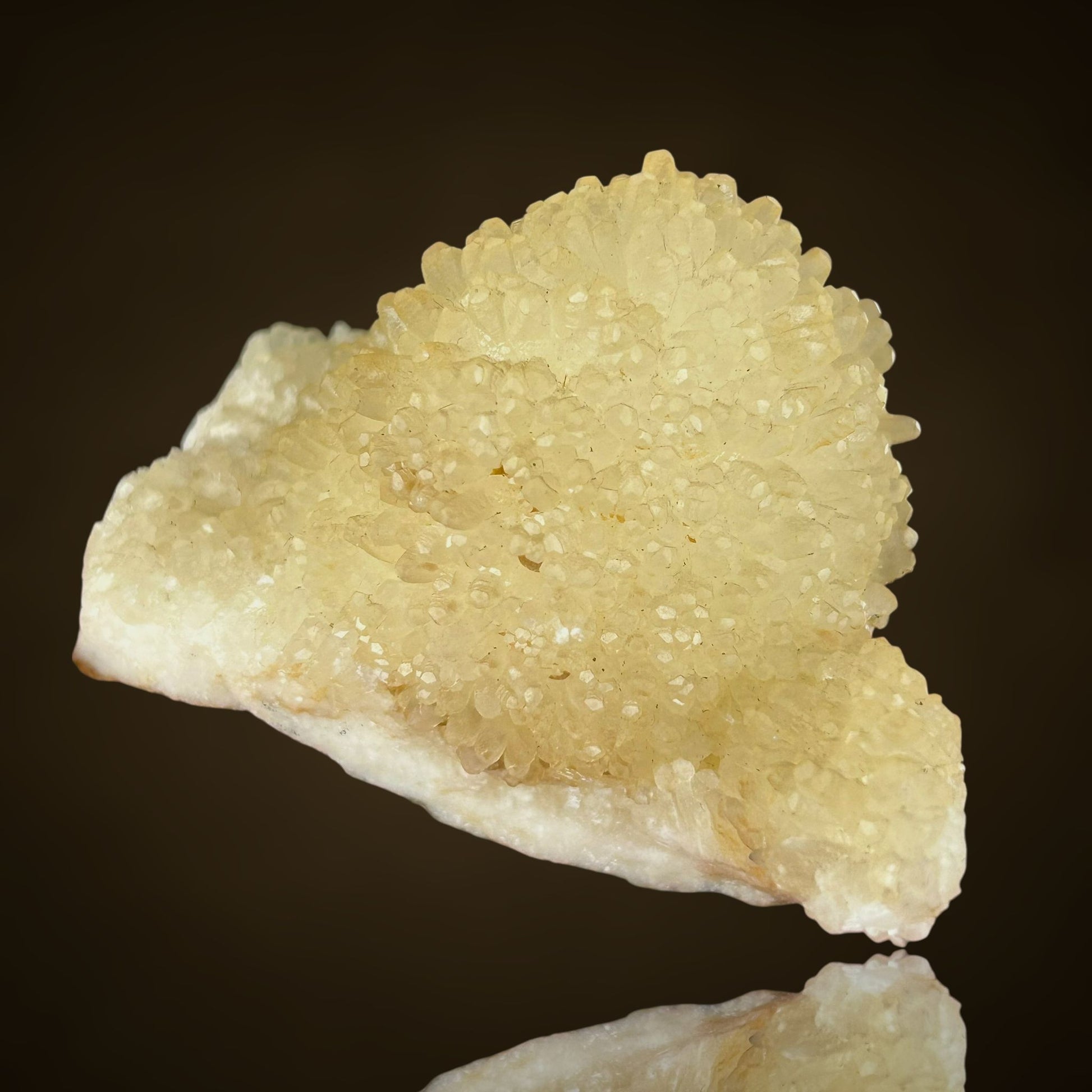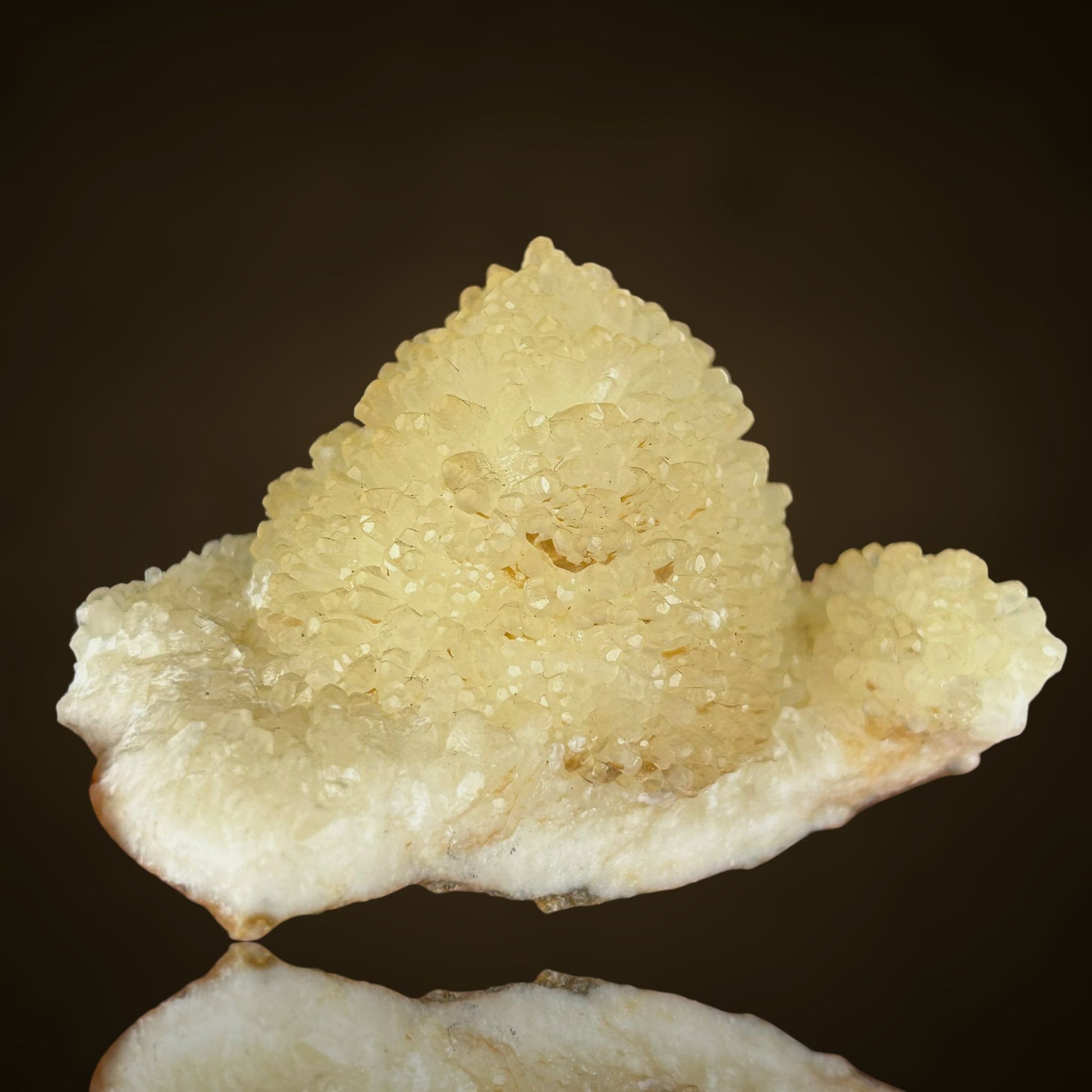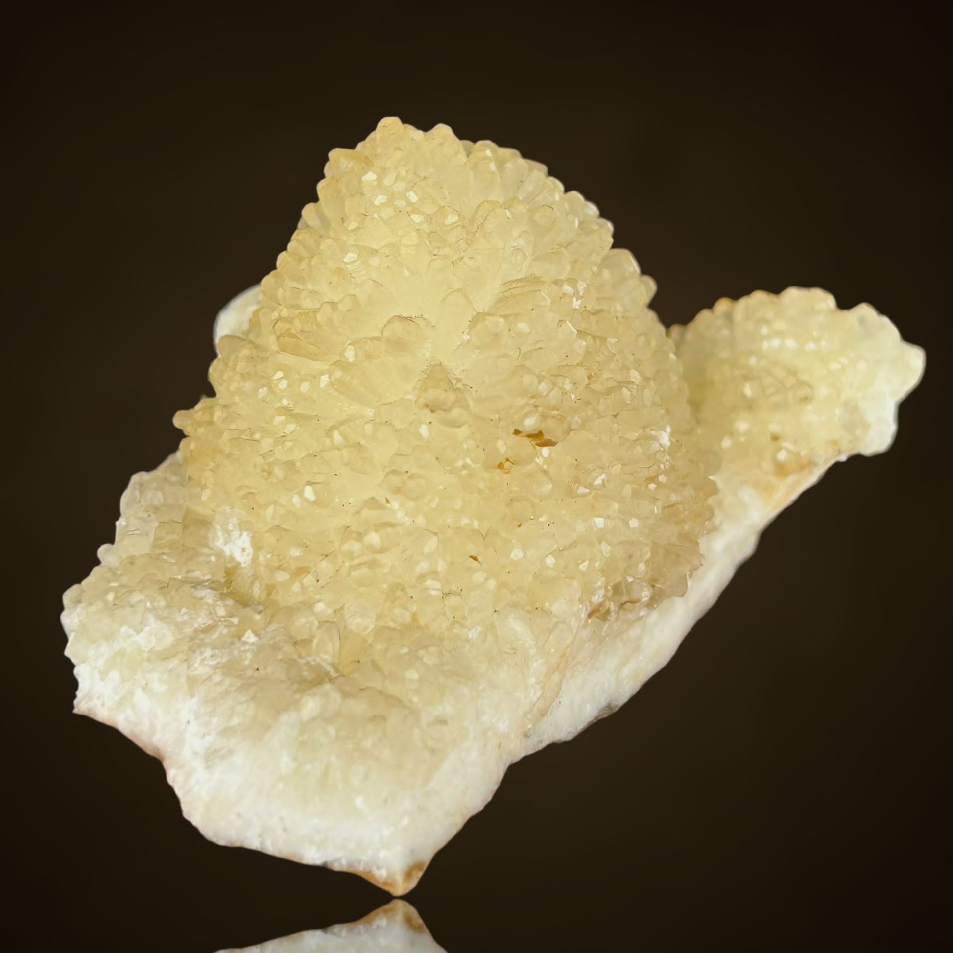 Igelartige Calcitkristall-Cluster aus endlosen, goldenen skalenoedrischen Kristallen mit glänzenden, funkelnden Flächen.