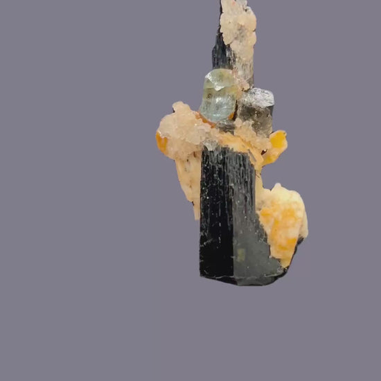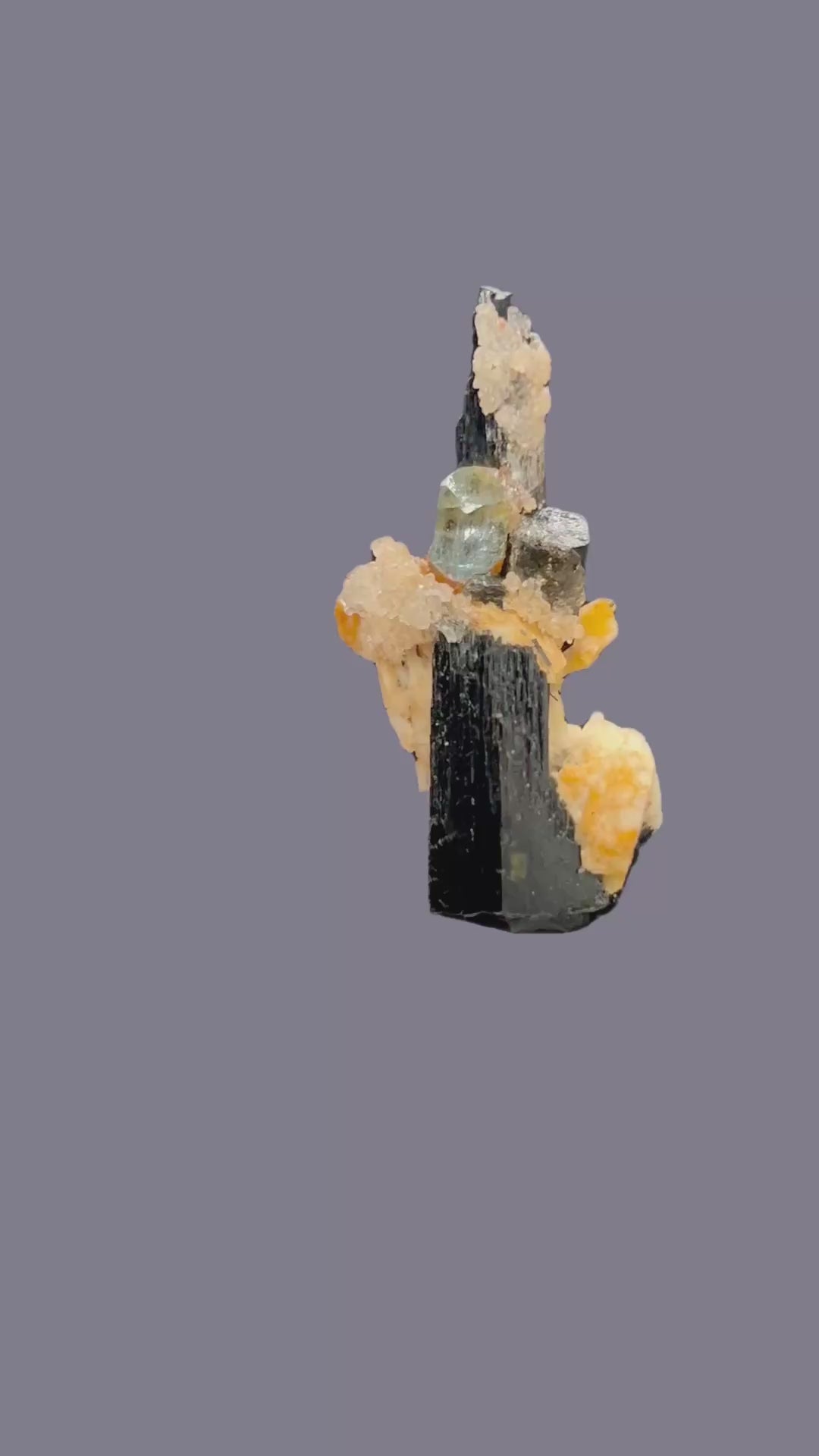 🇬🇧 A brilliant aquamarine with a fine head termination, sitting on a schorl tourmaline and virtually encased in hyalite.