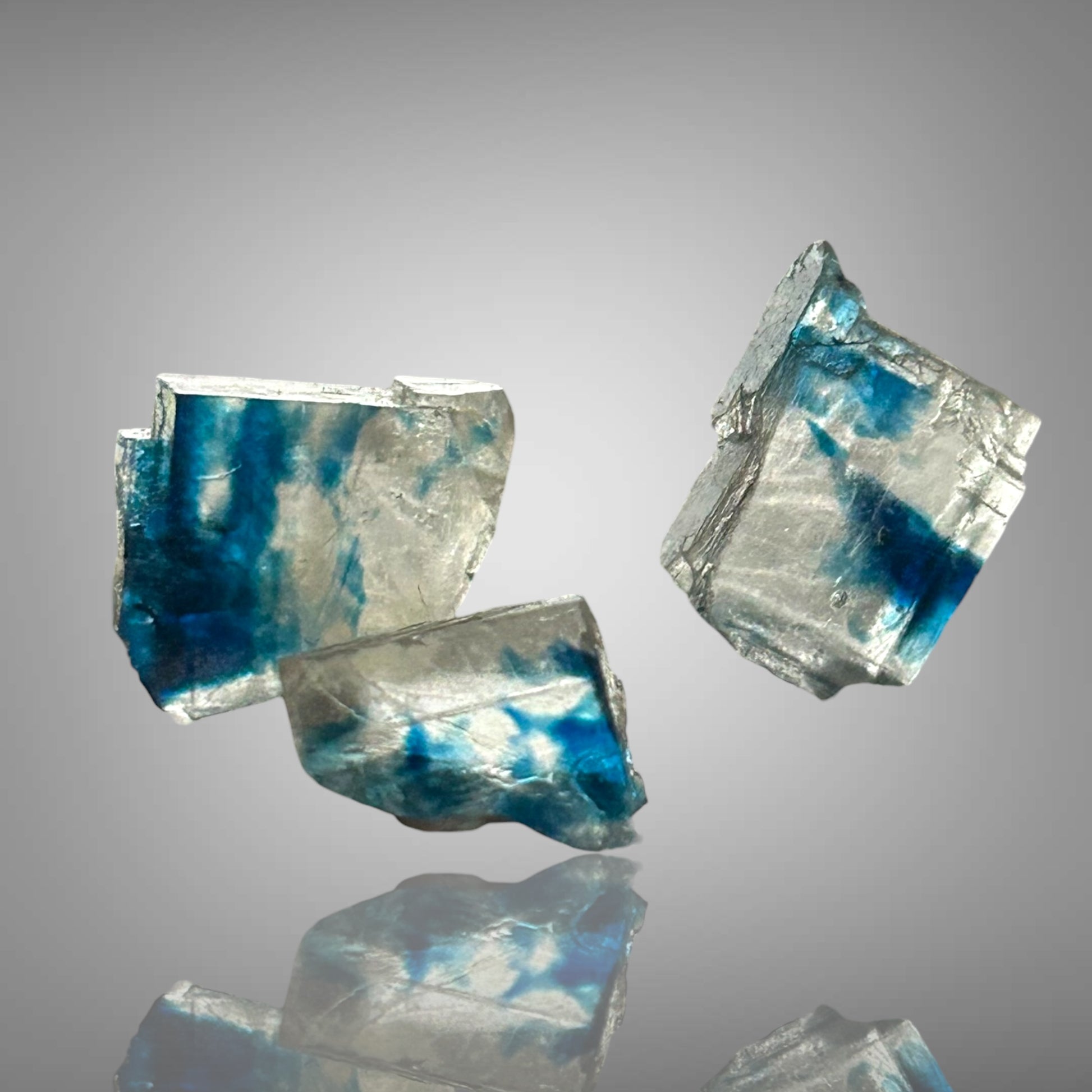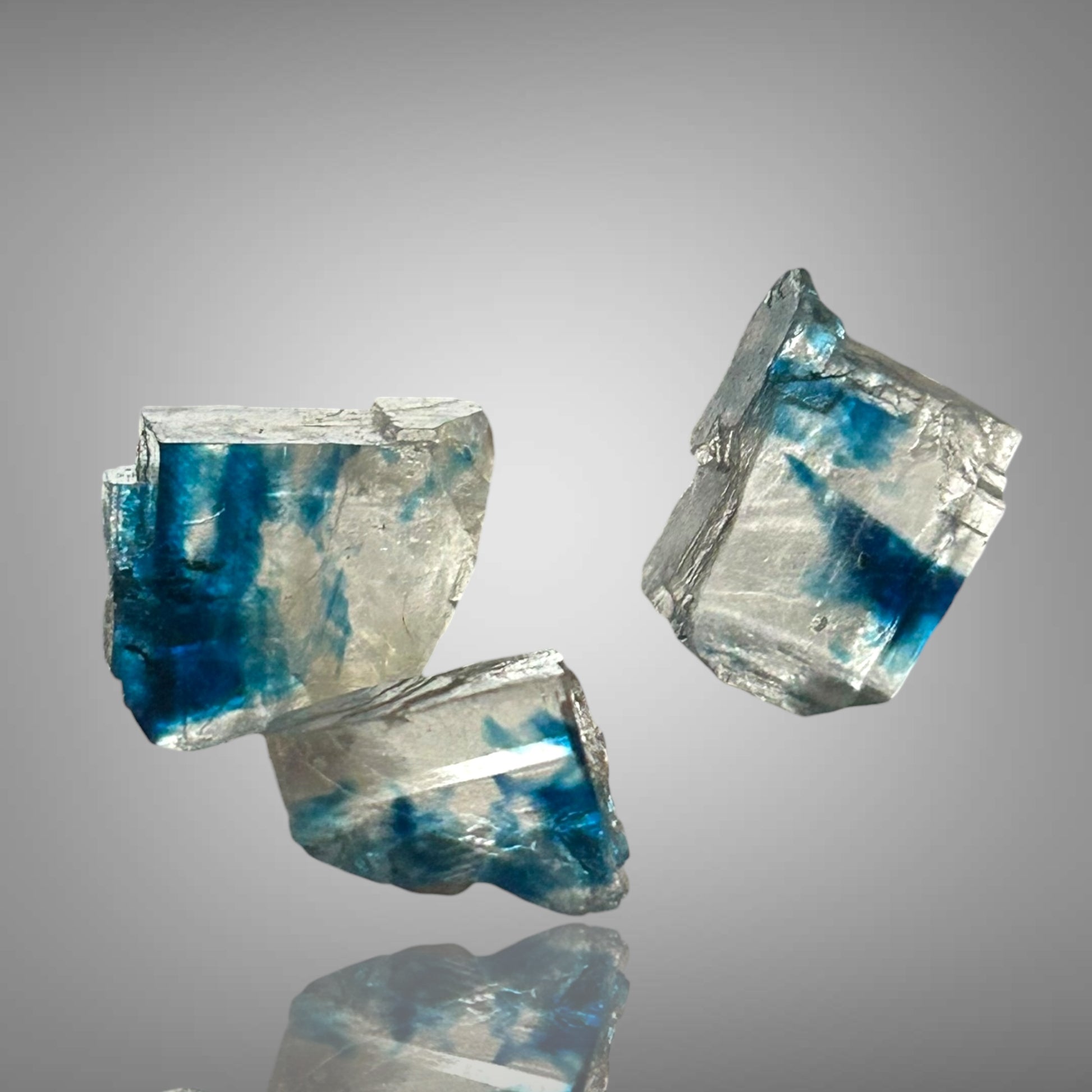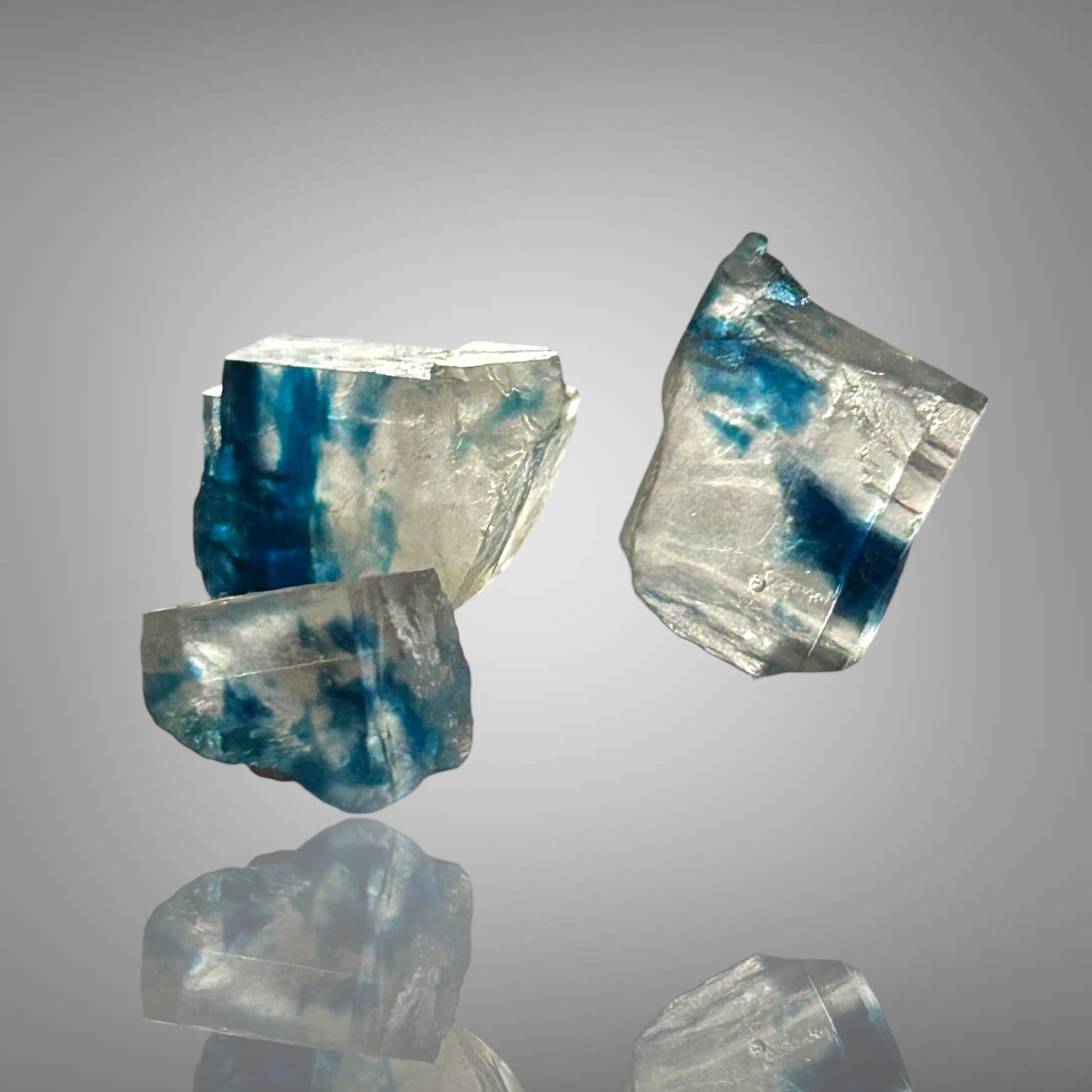 Blaue Halitkristalle aus Zielitz mit einem künstlerisch diffusen Blau im Inneren stammen aus Deutschlands ältestem noch aktiven Bergwerk. Sie sind nicht direkt im Bergwerk erhältlich, da dort keine Stücke verkauft werden.