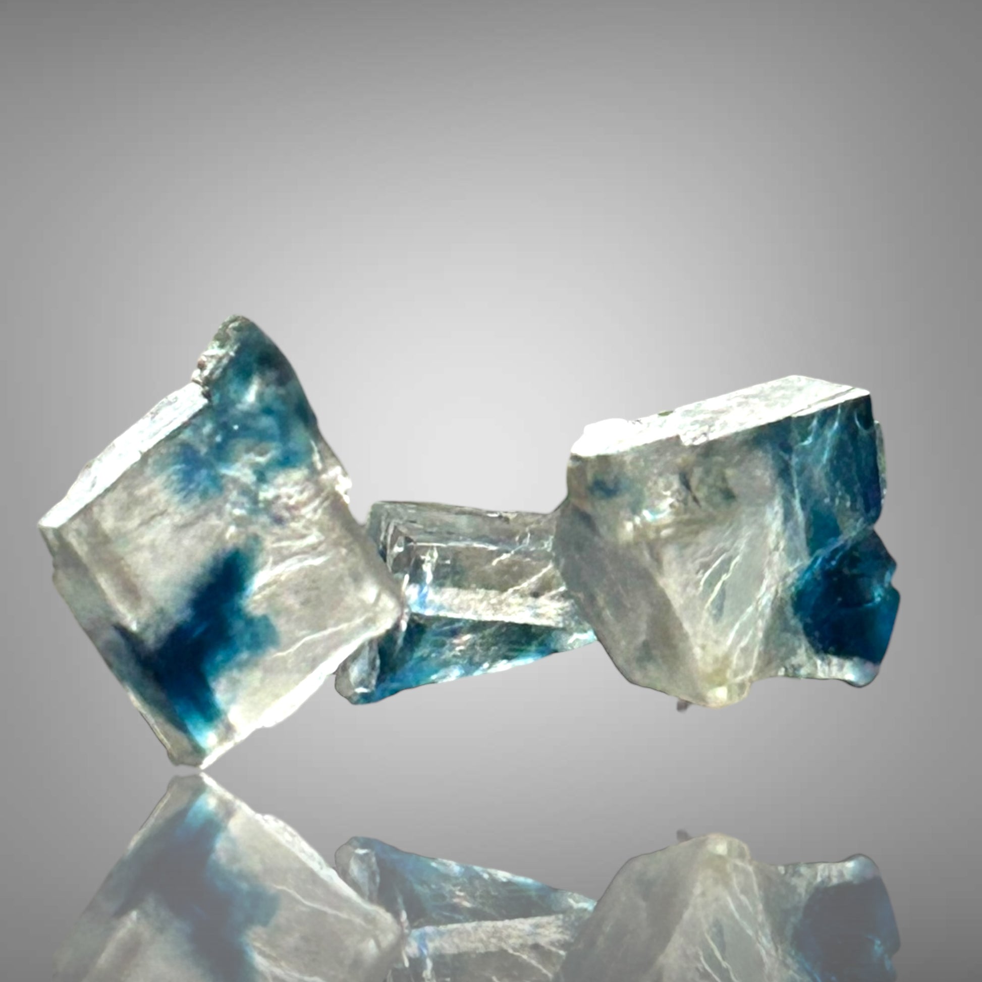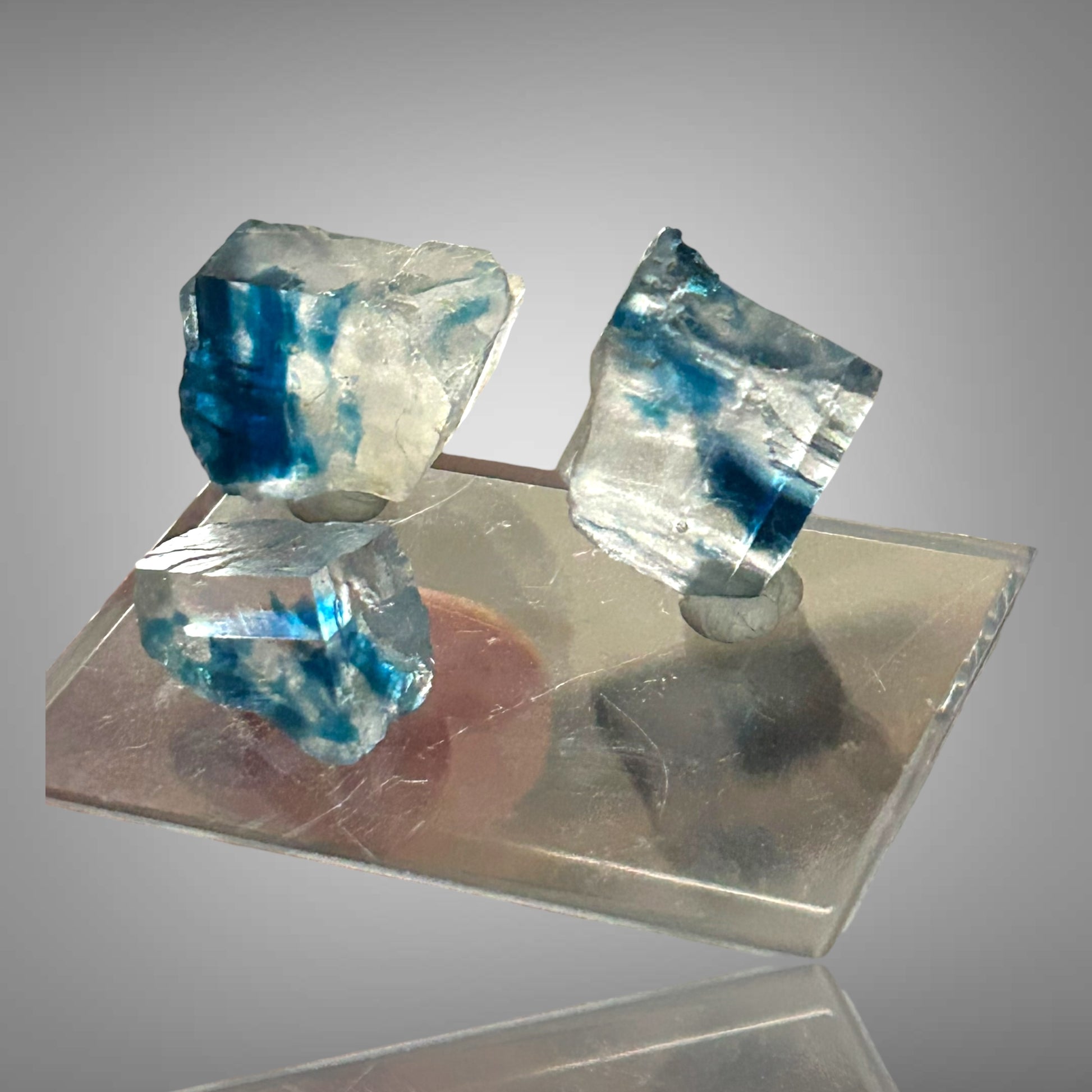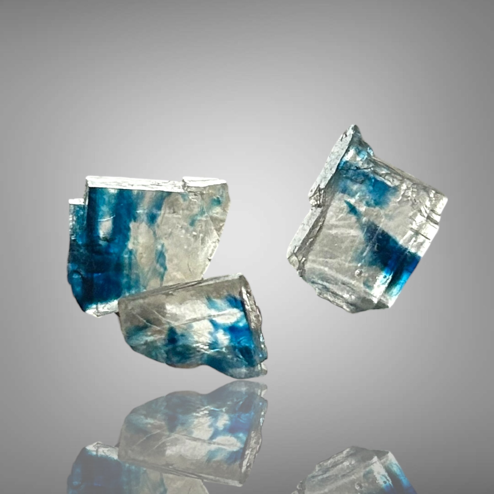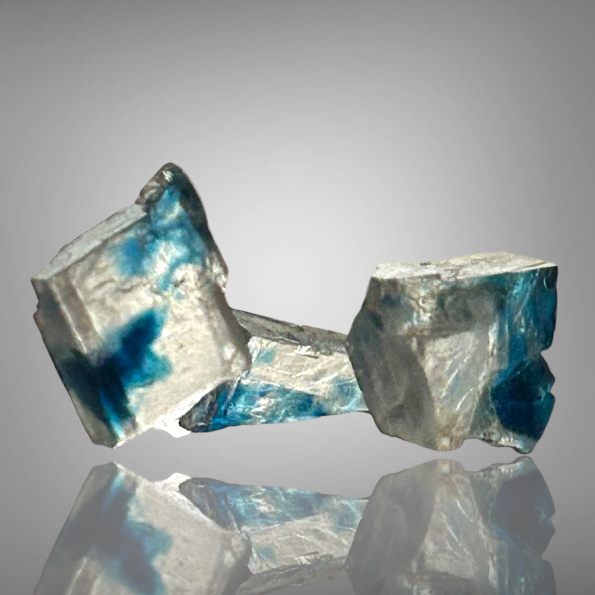 Blaue Halitkristalle aus Zielitz mit einem künstlerisch diffusen Blau im Inneren stammen aus Deutschlands ältestem noch aktiven Bergwerk. Sie sind nicht direkt im Bergwerk erhältlich, da dort keine Stücke verkauft werden.