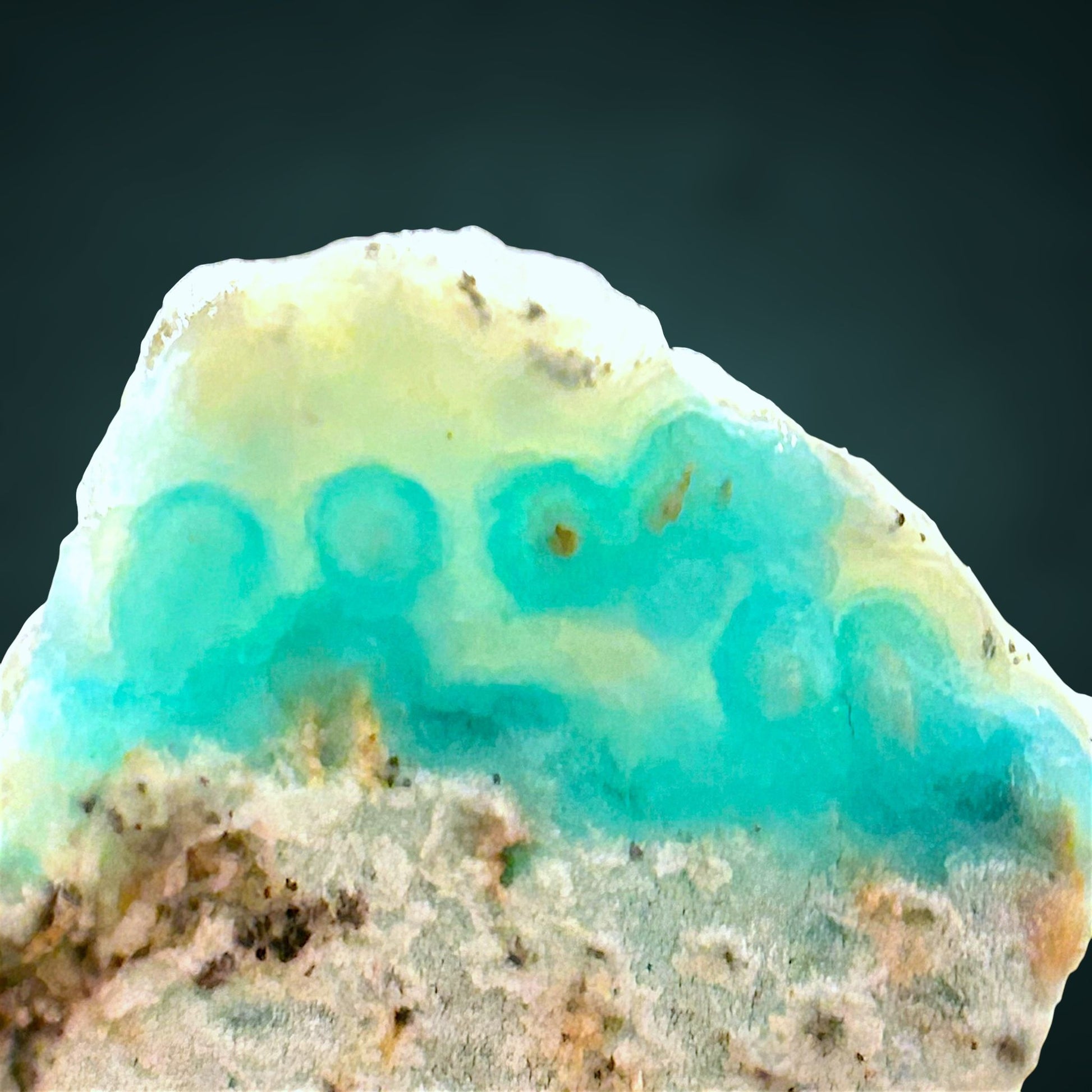 Ein hervorragendes Vorzeigestück von Smithsonit mit wunderschöner, glänzender, traubiger Oberfläche und fantastisch intensivem, gebändertem Türkisblau aus den antiken Minen von Lavrion im Mittelmeer.
