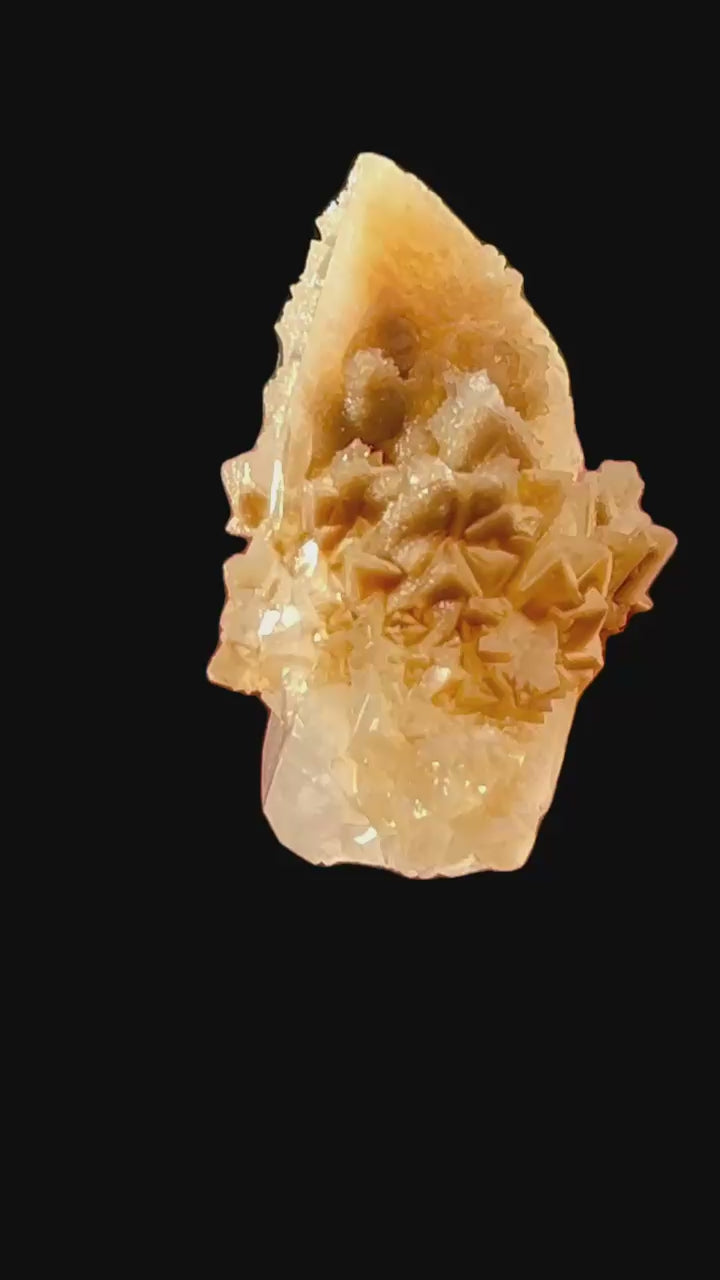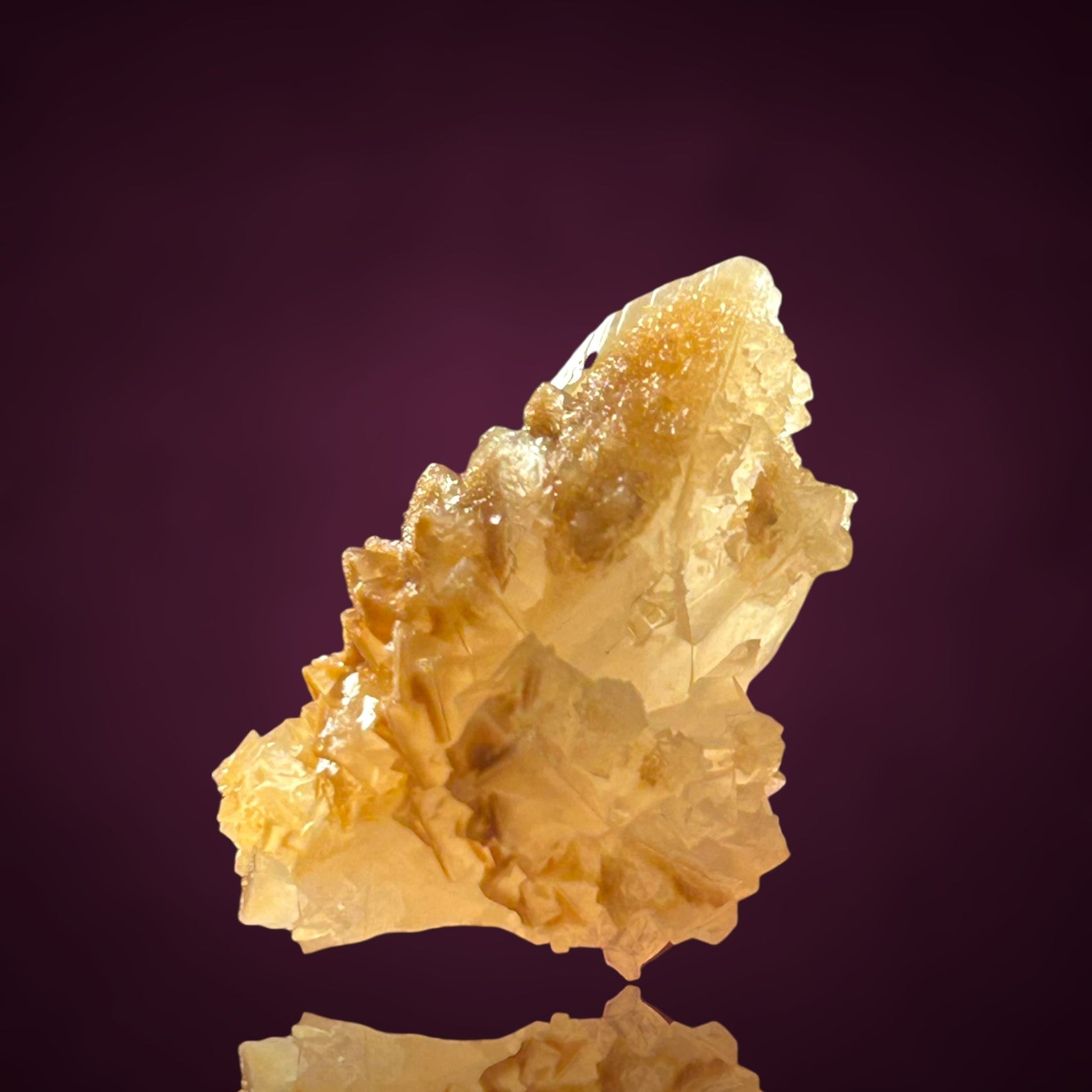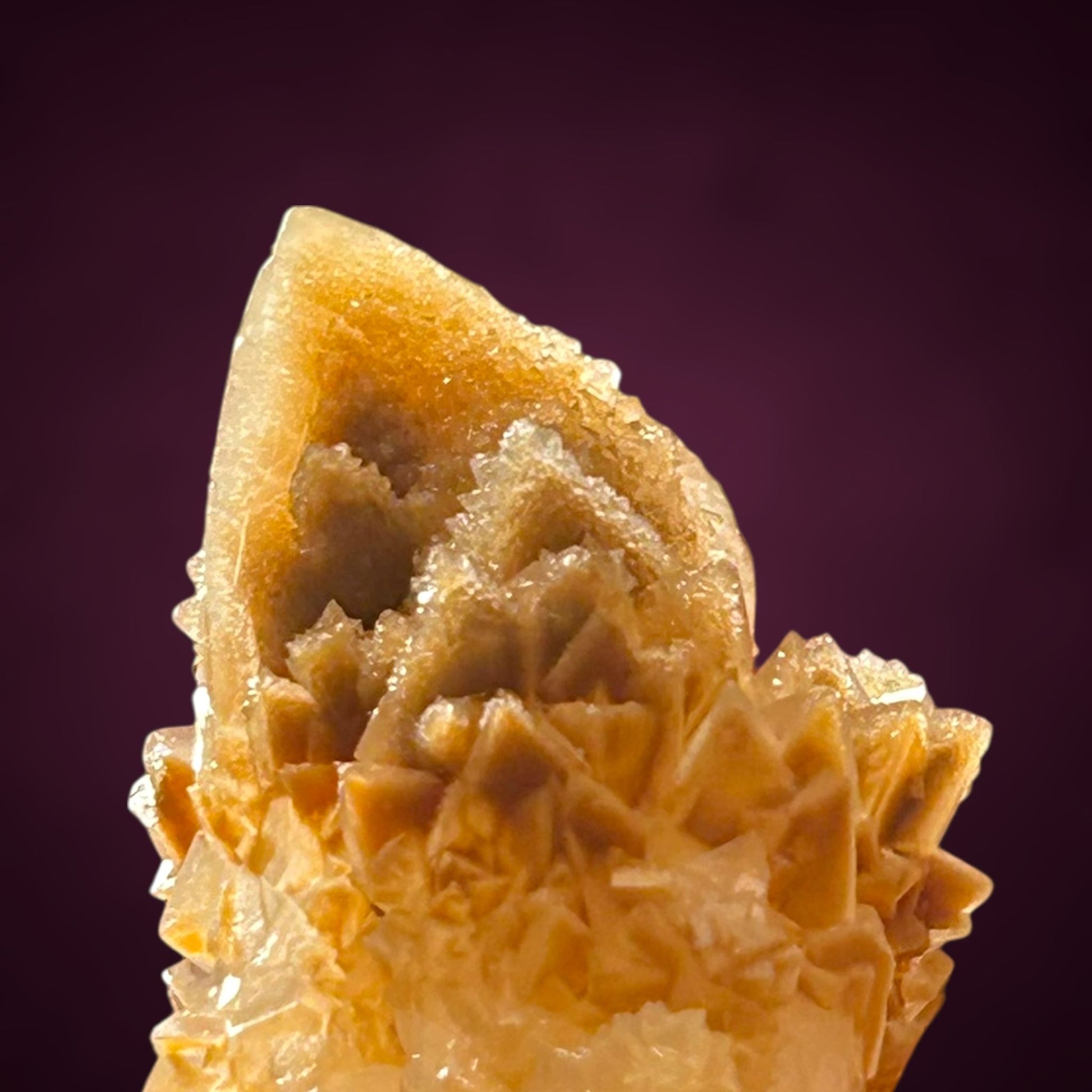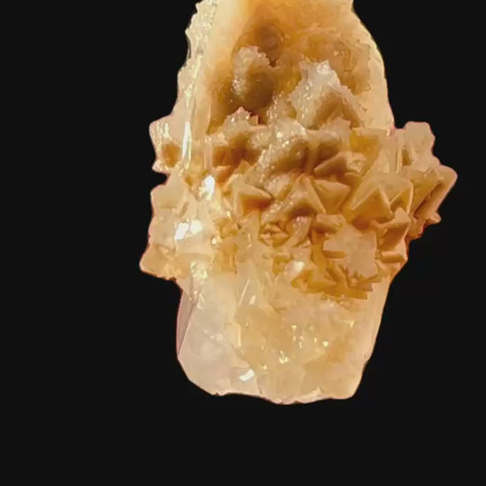 Honigfarbener, glänzender und stacheliger Calcit aus dem Harz mit einer zweiten und sogar dritten, funkelnden Generation.