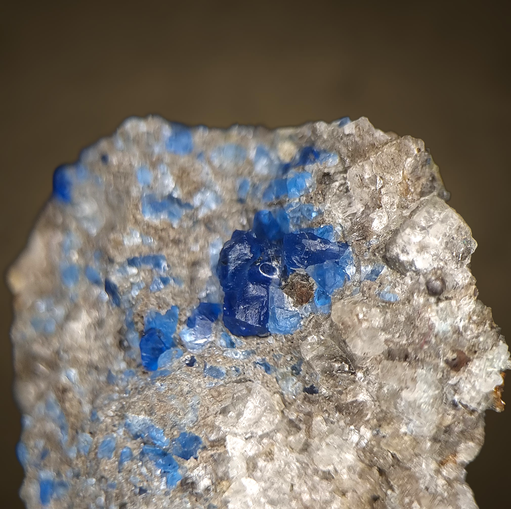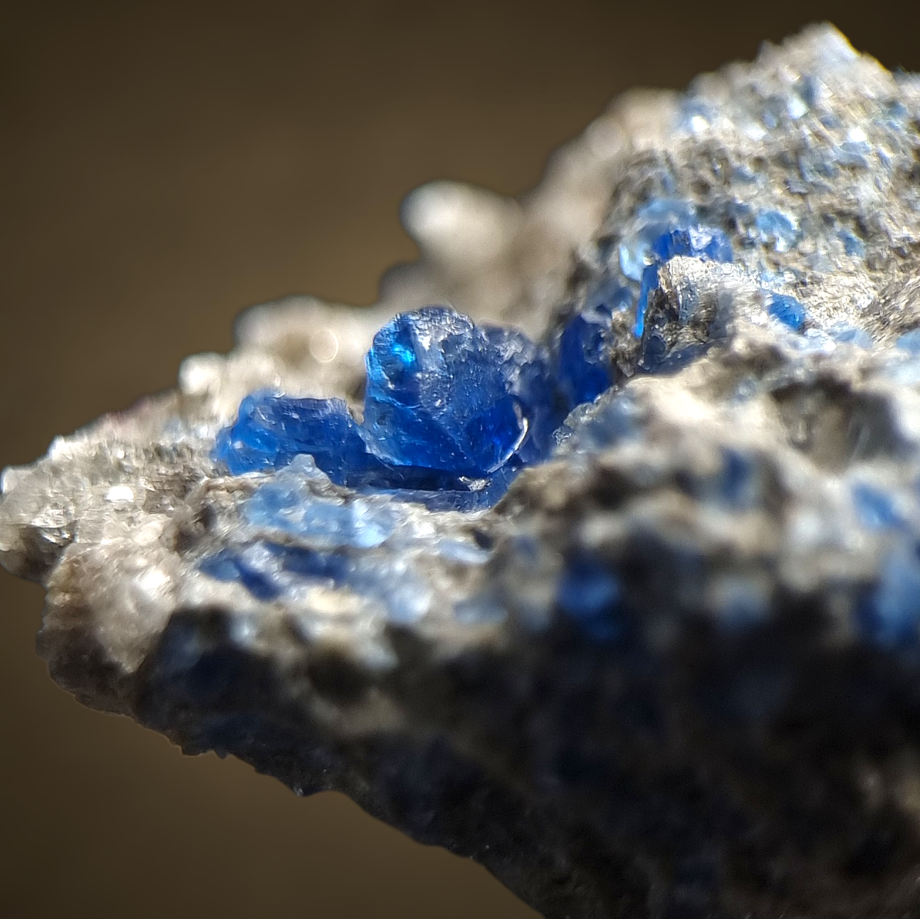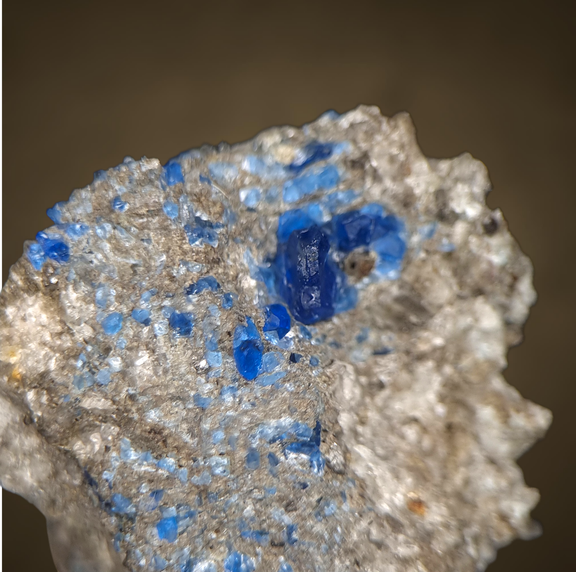 Hervorragender Hauyn in feinstem Kobaltblau in Bimsstein aus der Eifel.