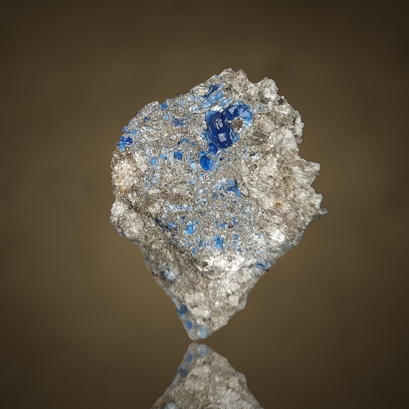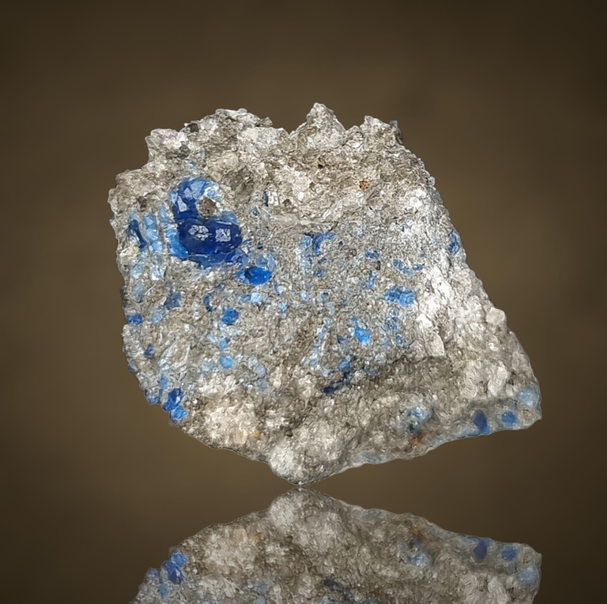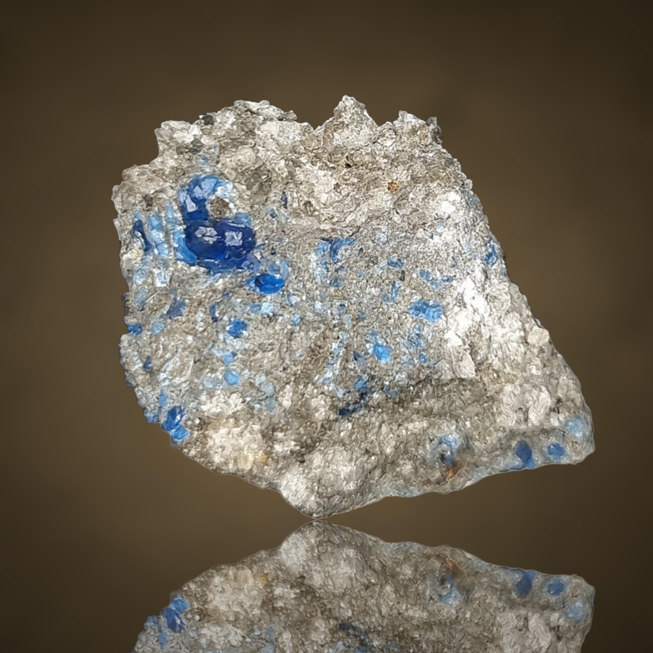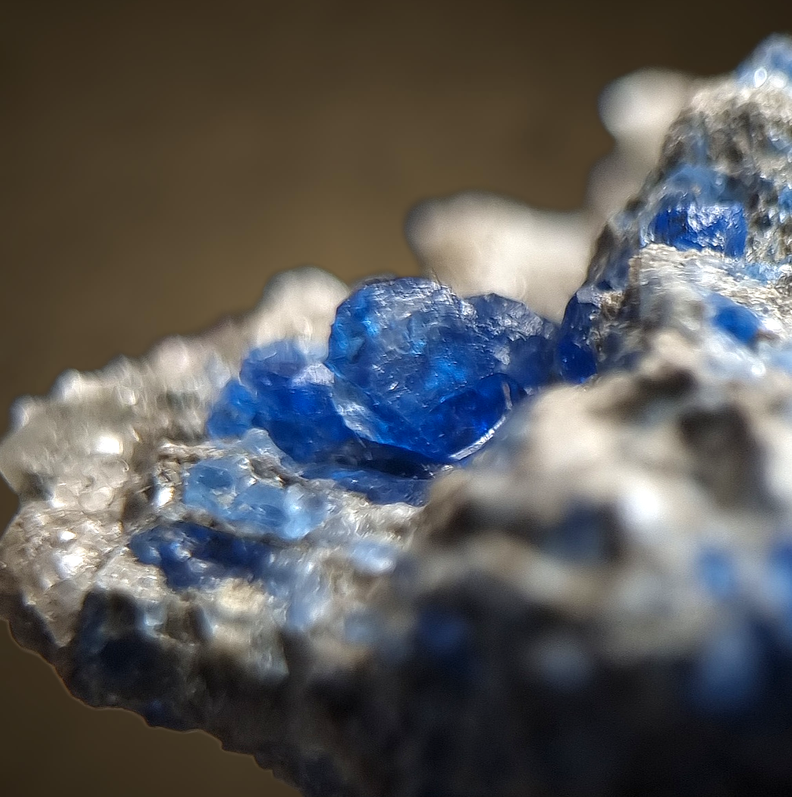 Hervorragender Hauyn in feinstem Kobaltblau in Bimsstein aus der Eifel.