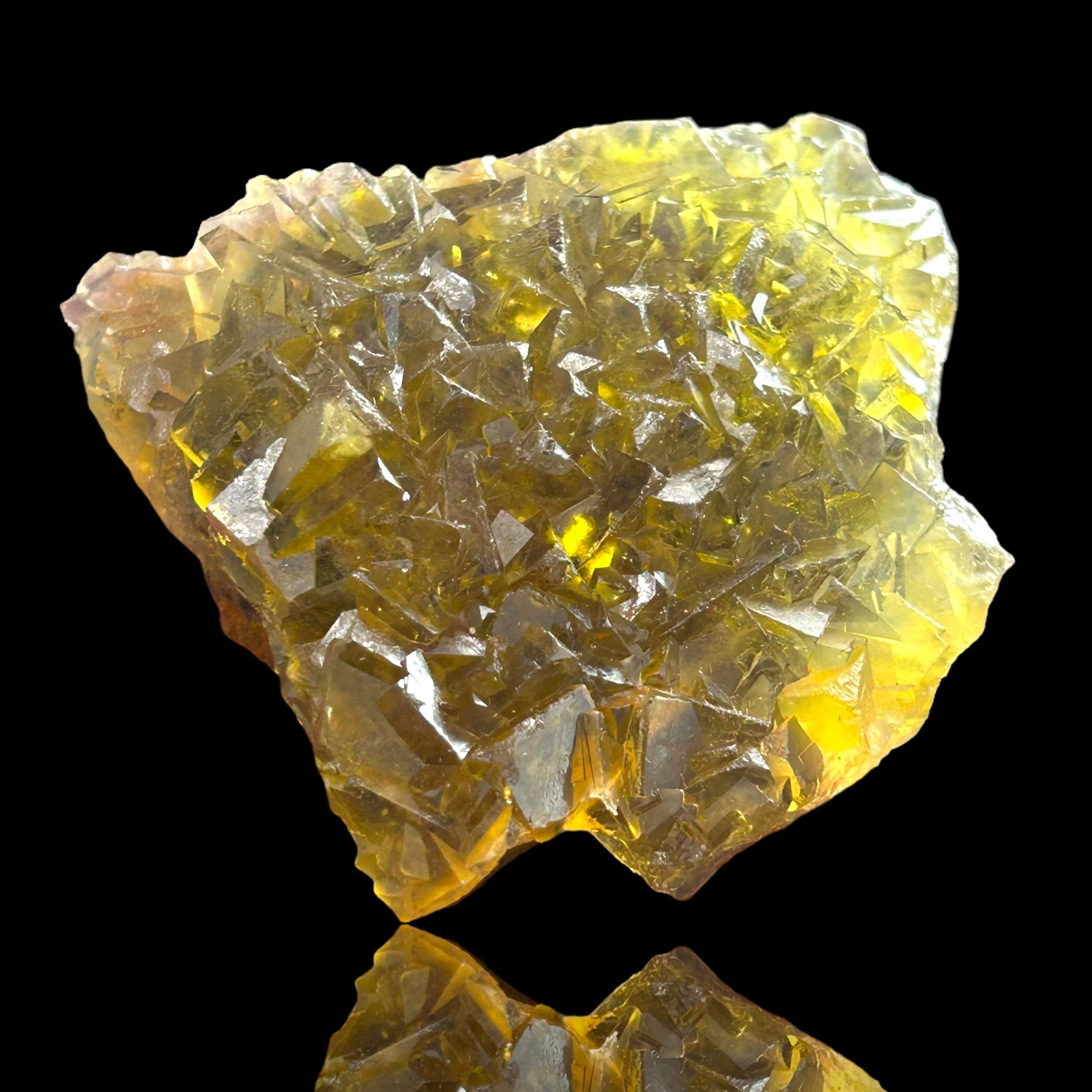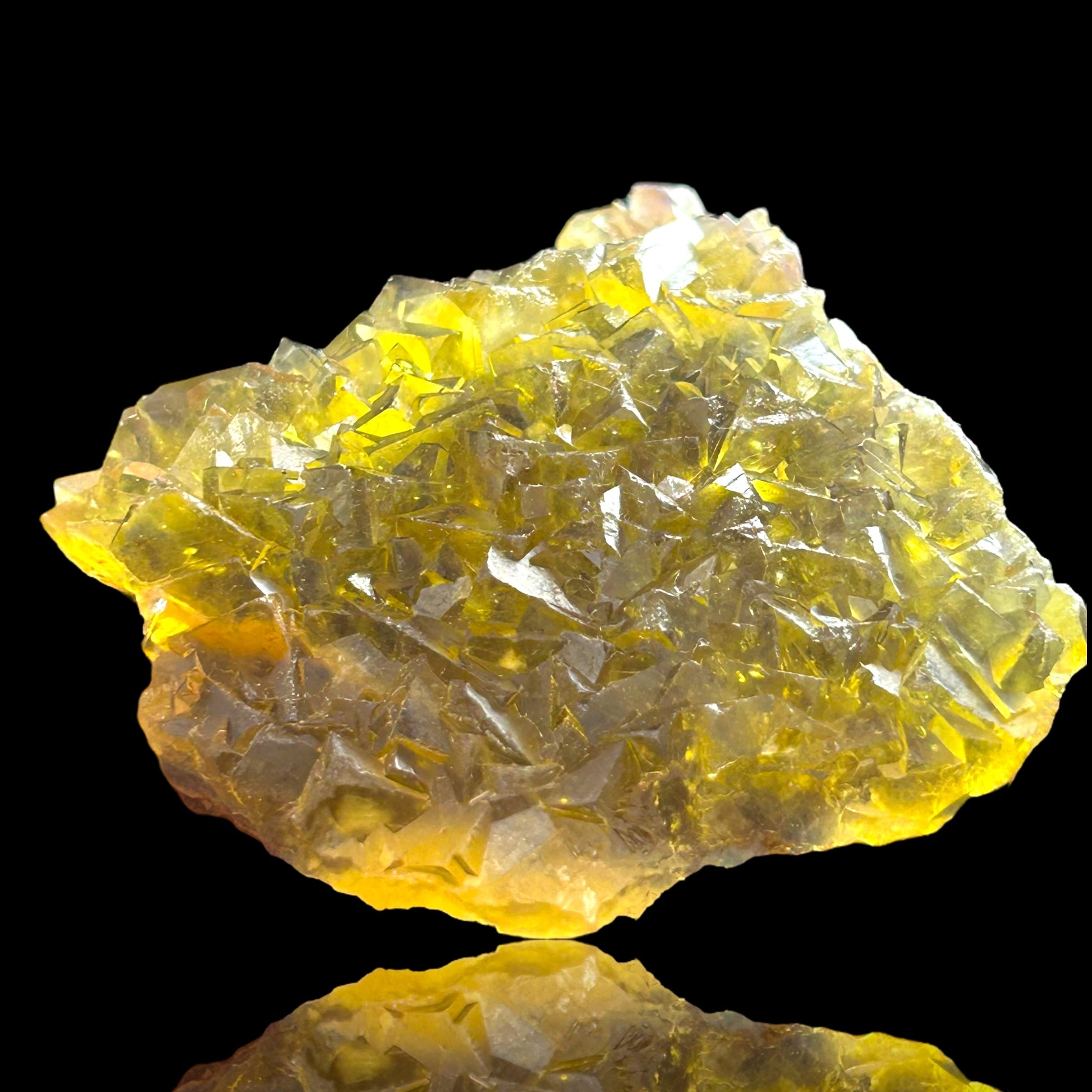 Diese Fluorit aus der Okorusu Mine ist unglaublich intensiv, warmgelb, völlig transparent und weitgehend unbeschädigt.