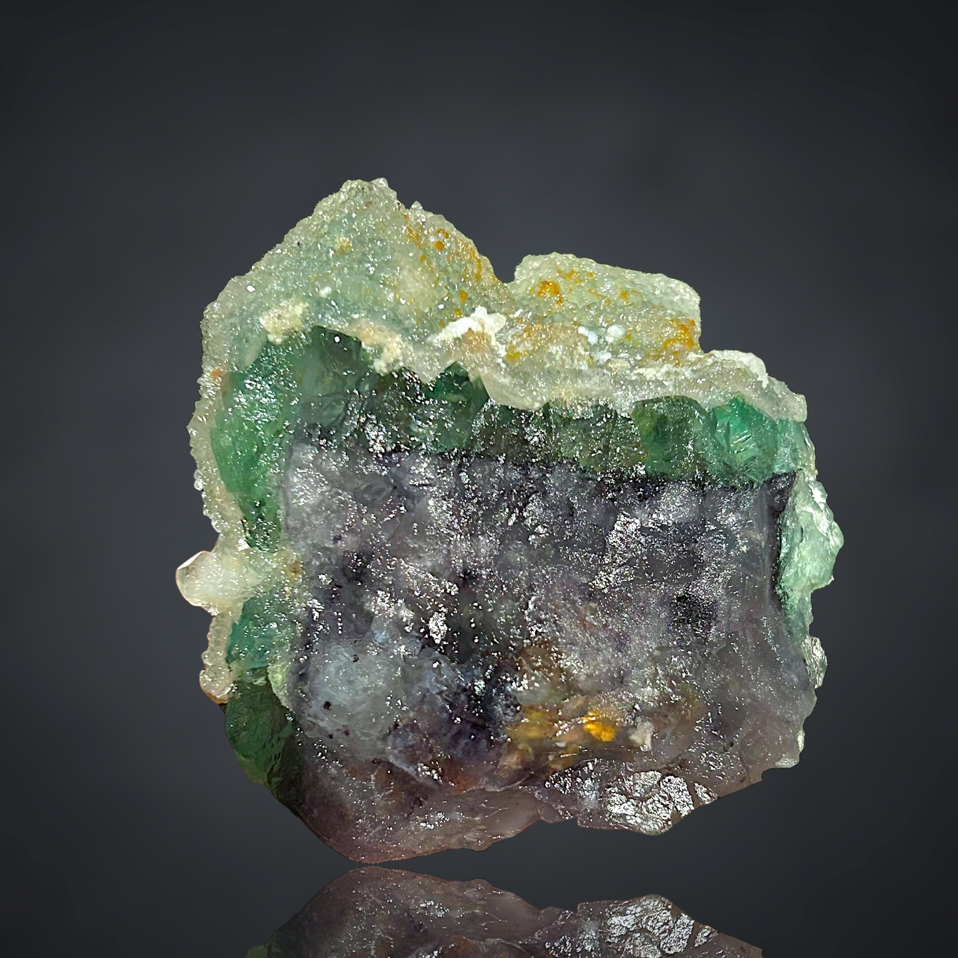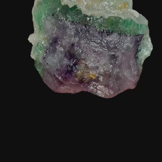 From a crystal healing viewpoint, fluorite is traditionally associated with mental clarity, structure, and energetic balance, supporting focus and clear decision-making. The combination of violet and green fluorite is often seen as harmonizing intuition with emotional stability.