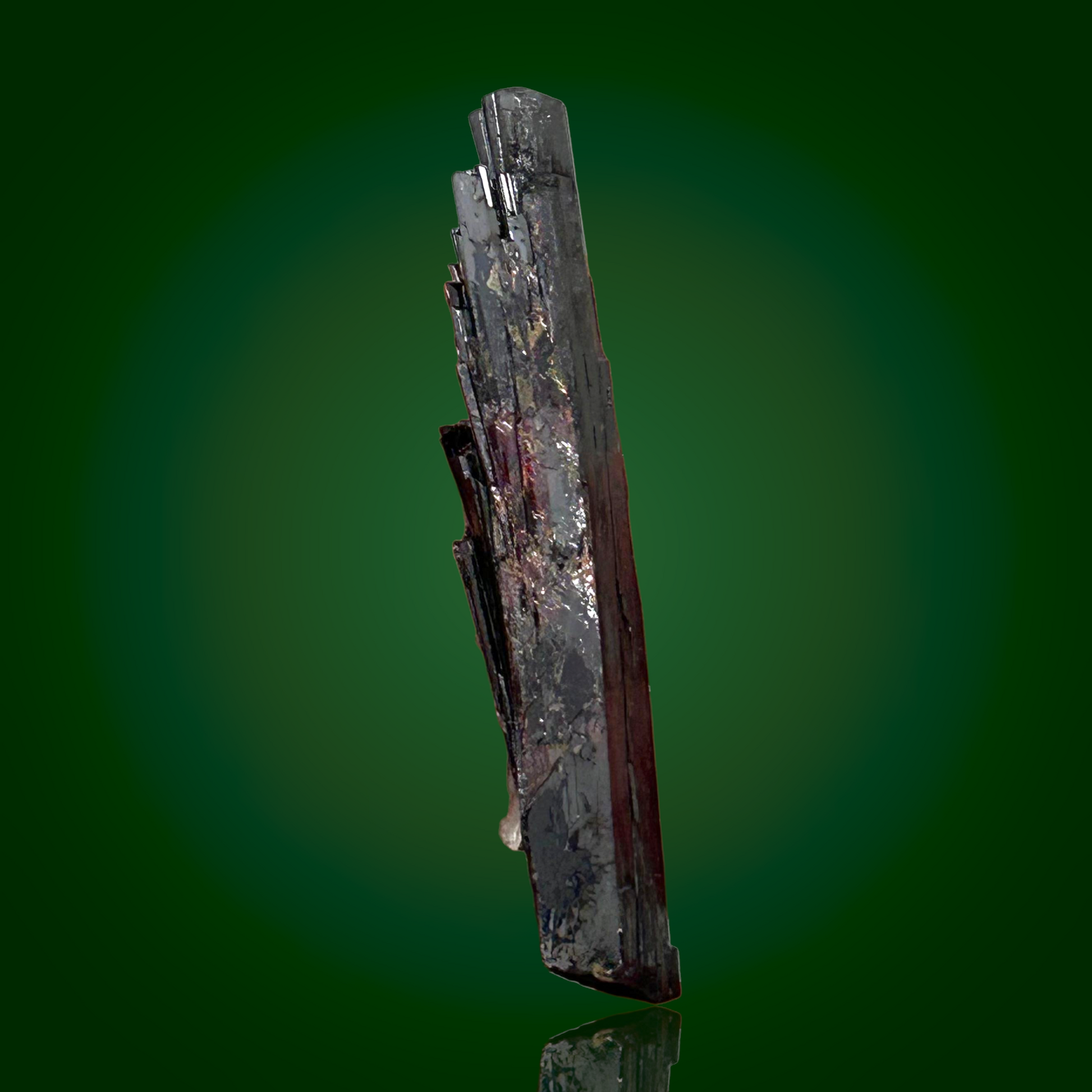 Seine langgestreckte Wuchsform und die lebhaften inneren Reflexionen erzeugen einen bemerkenswerten visuellen Effekt, insbesondere bei Beleuchtung aus verschiedenen Winkeln.