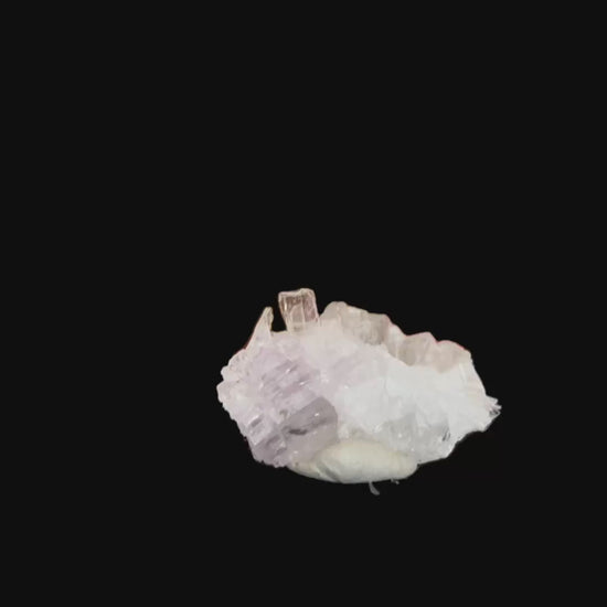 Brillante Hydroborazitkristalle auf manganhaltigem rosa Anhydrit.
