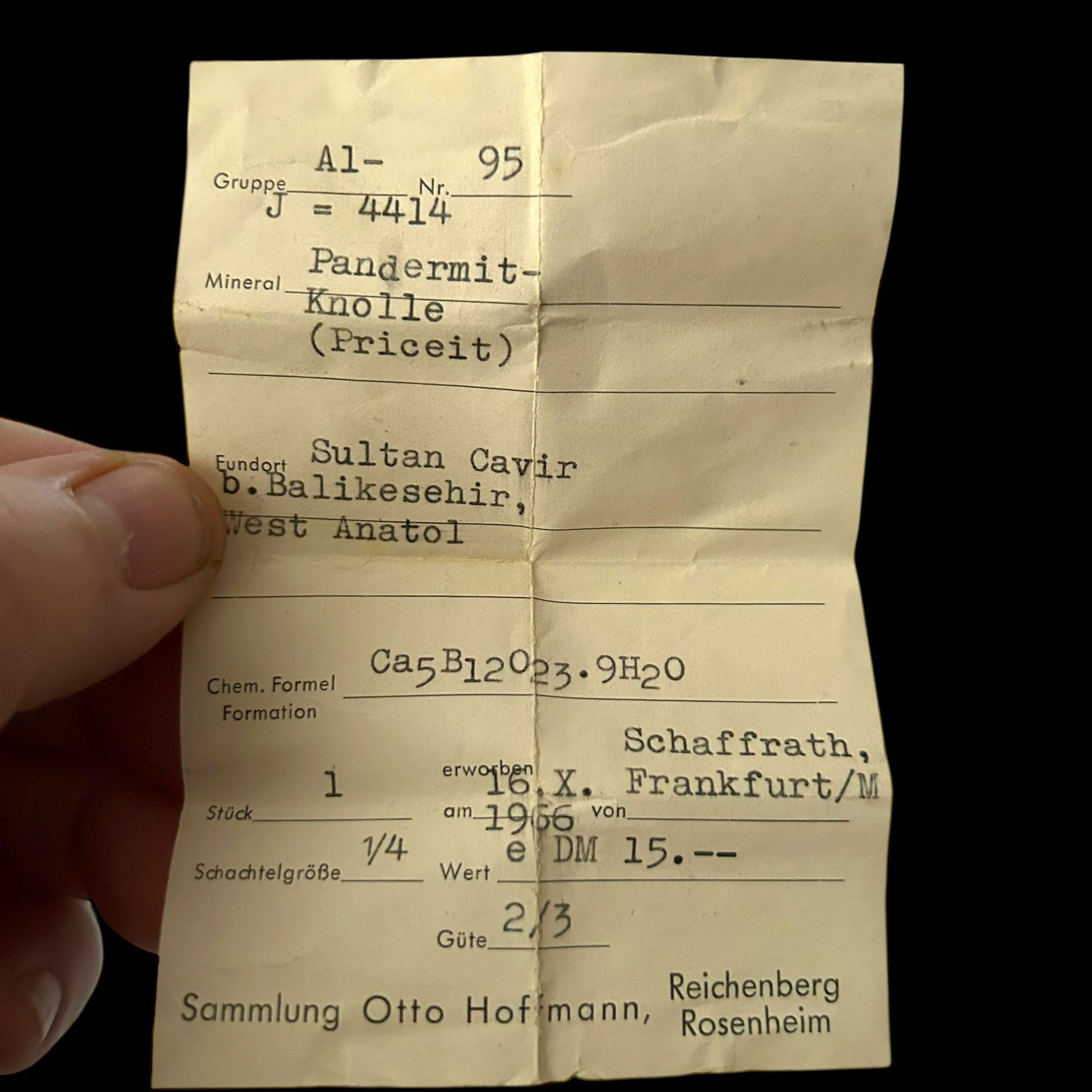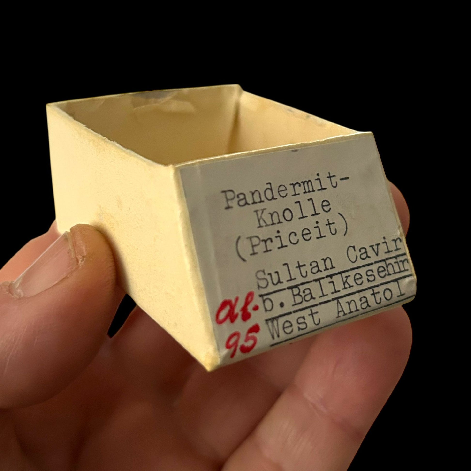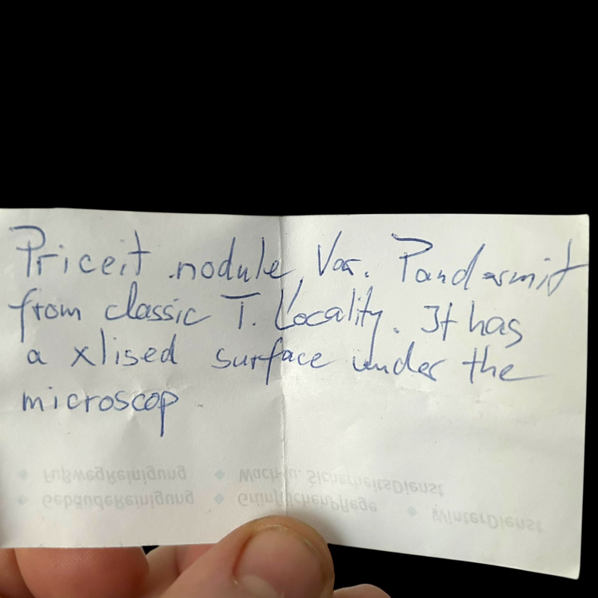 Ausgezeichnete Stufe des seltenen Minerals Priceit in der Varietät Pandermit, als blasige blumenkohlartige Knolle vom klassischen türkischen Fundort. Die Oberfläche zeigt eine gemeißelte Struktur, die unter dem Mikroskop gut sichtbar ist.