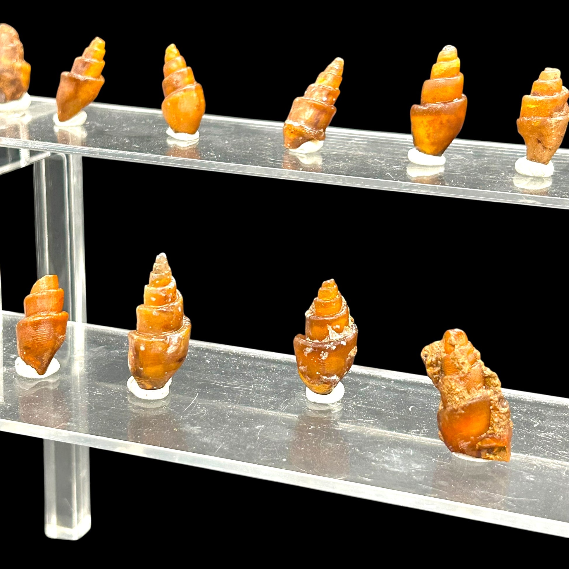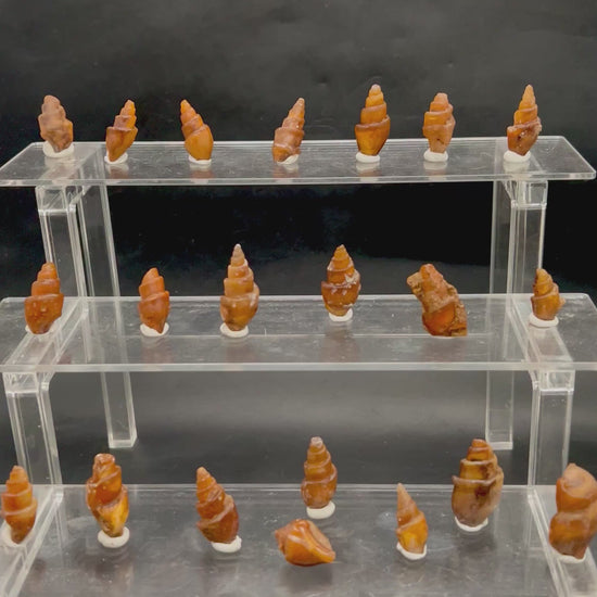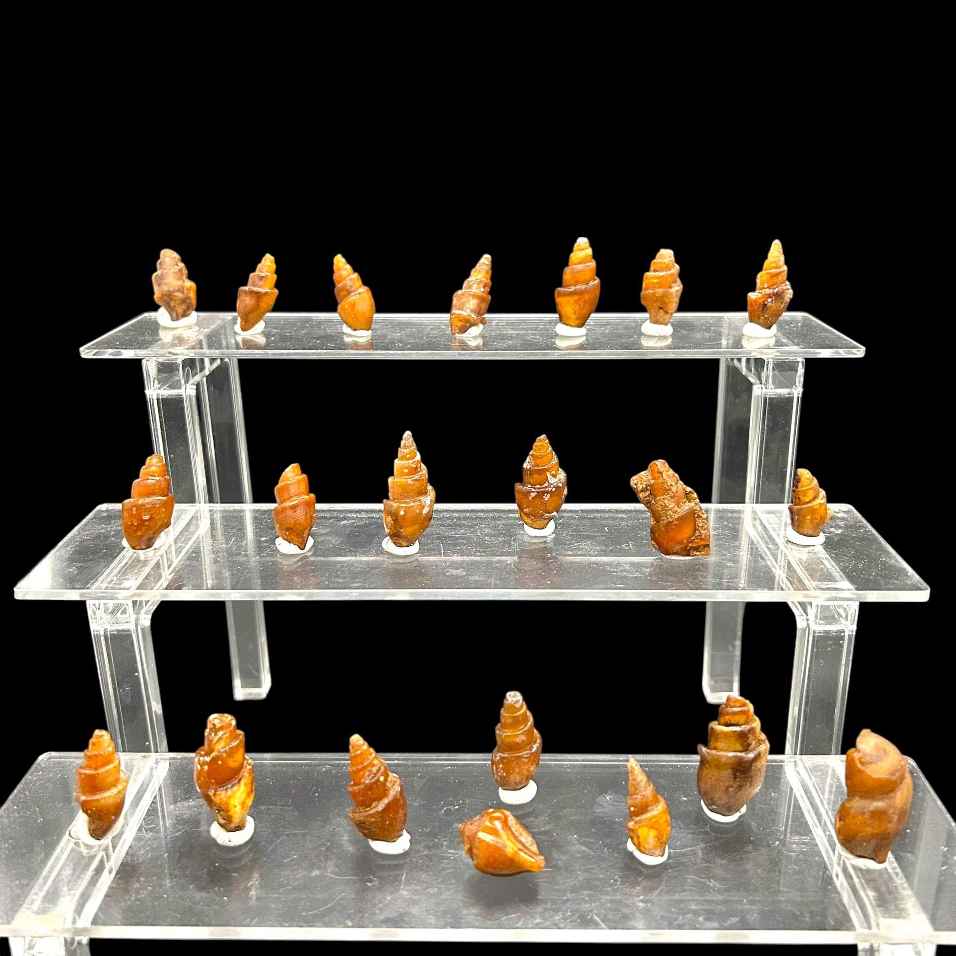 21 fossil Turitella snails from Western Sahara, completely transformed into agate.