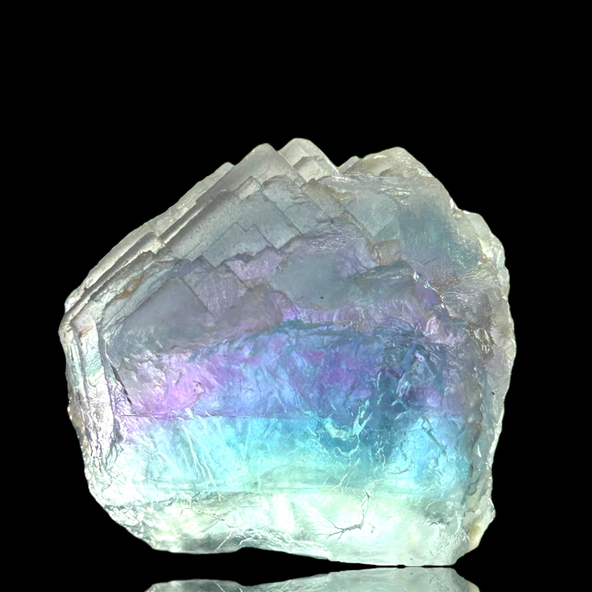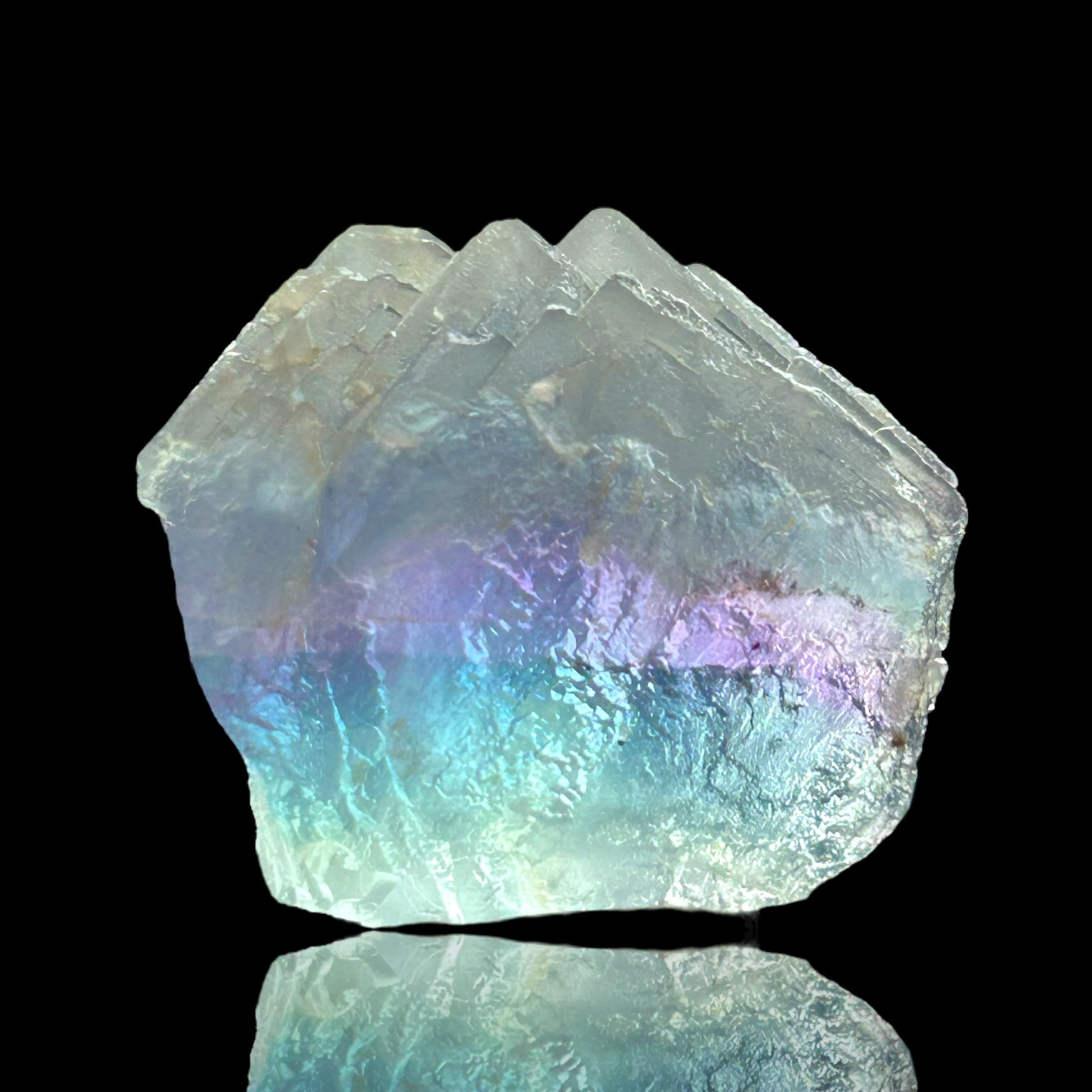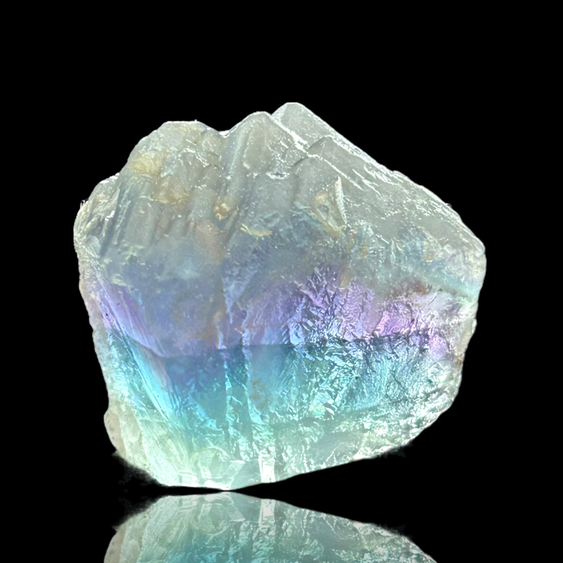 🇩🇪 Was ein schönes Stüfchen: die Kristallspitzen erinnern an verschneite Gipfel und die pastellfarbenen Regenbogenfarben, die sich in einer seltenen klarheit, ja fast Schleifwürdigkeit, zeigen, sind einfach traumhaft.