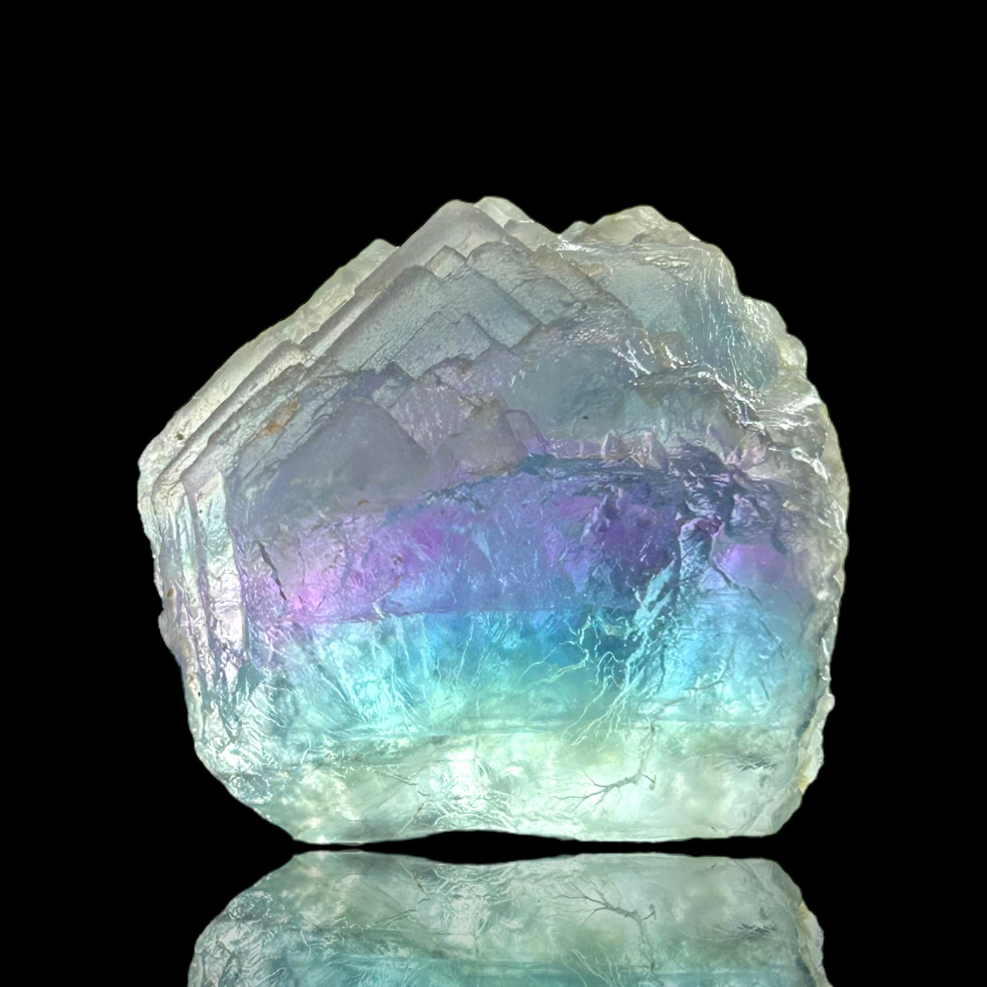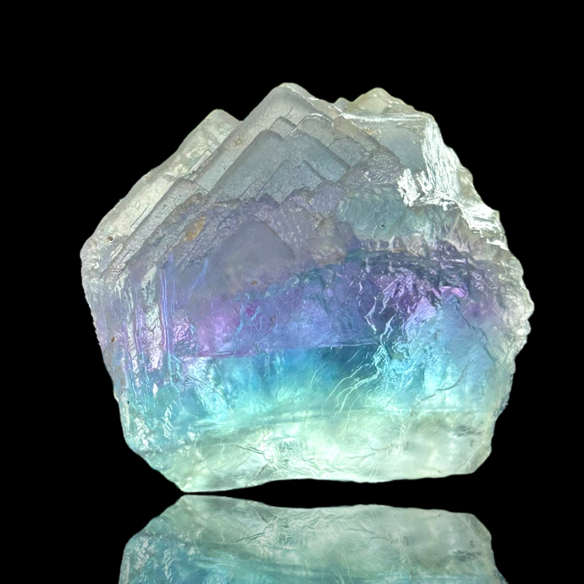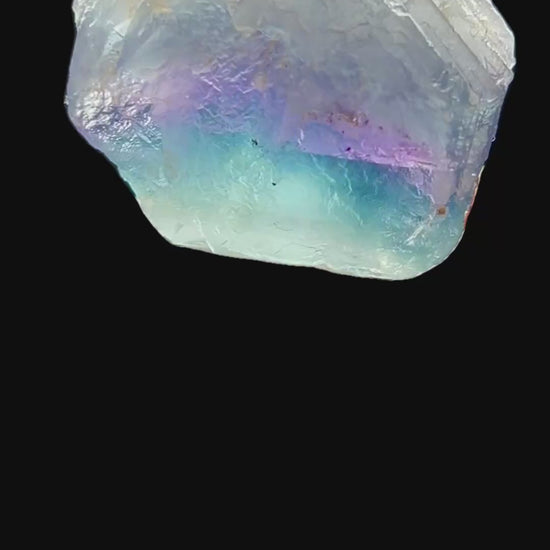 🇩🇪 Was ein schönes Stüfchen: die Kristallspitzen erinnern an verschneite Gipfel und die pastellfarbenen Regenbogenfarben, die sich in einer seltenen klarheit, ja fast Schleifwürdigkeit, zeigen, sind einfach traumhaft.