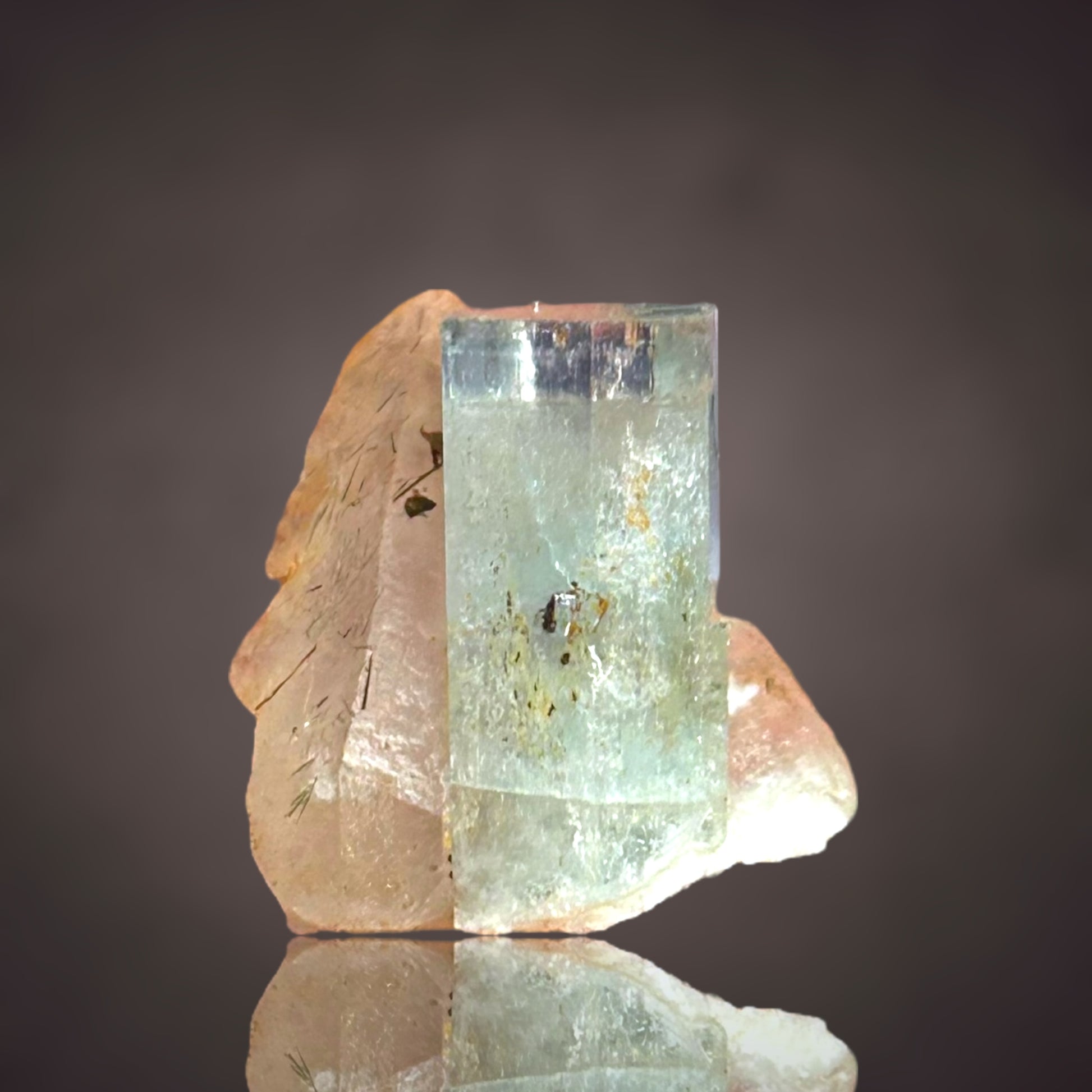 🇩🇪 Wunderschöner Aquamarin X, gemmy und brilliante, intakte Endfläche, an Quarz.