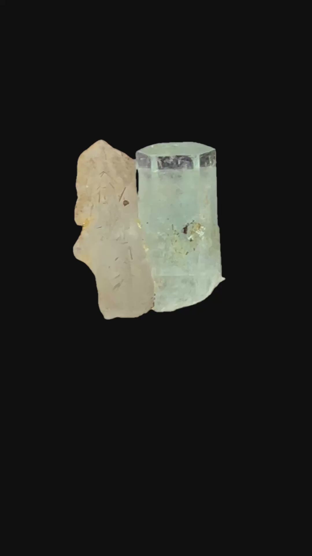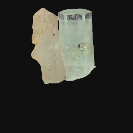 🇬🇧 Beautiful gemmy and brilliant, intact aquamarine X on quartz.