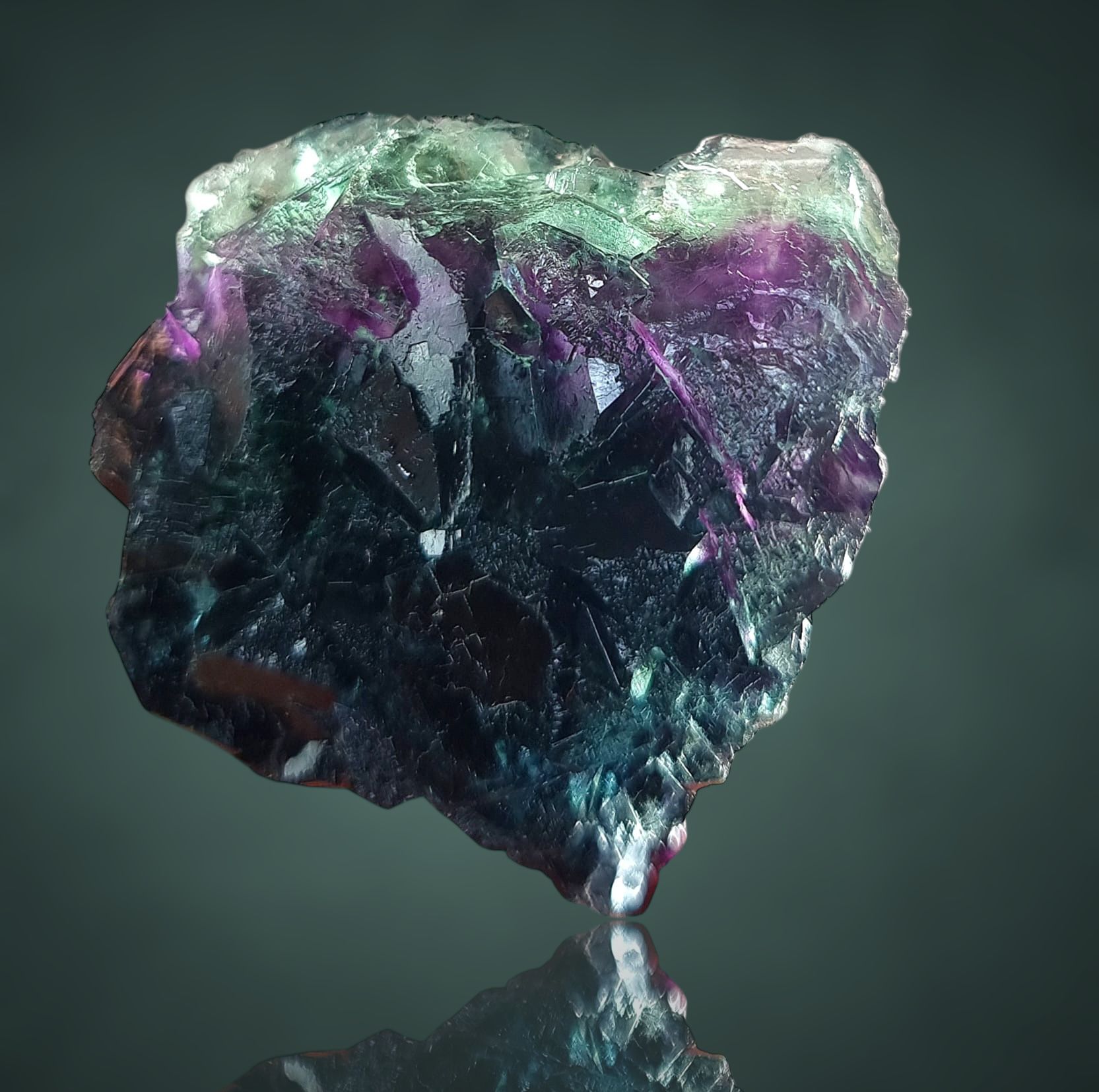 Incredibly vivid and glowy purple and green combination of very gemmy fluorite with sparkling crystal faces.