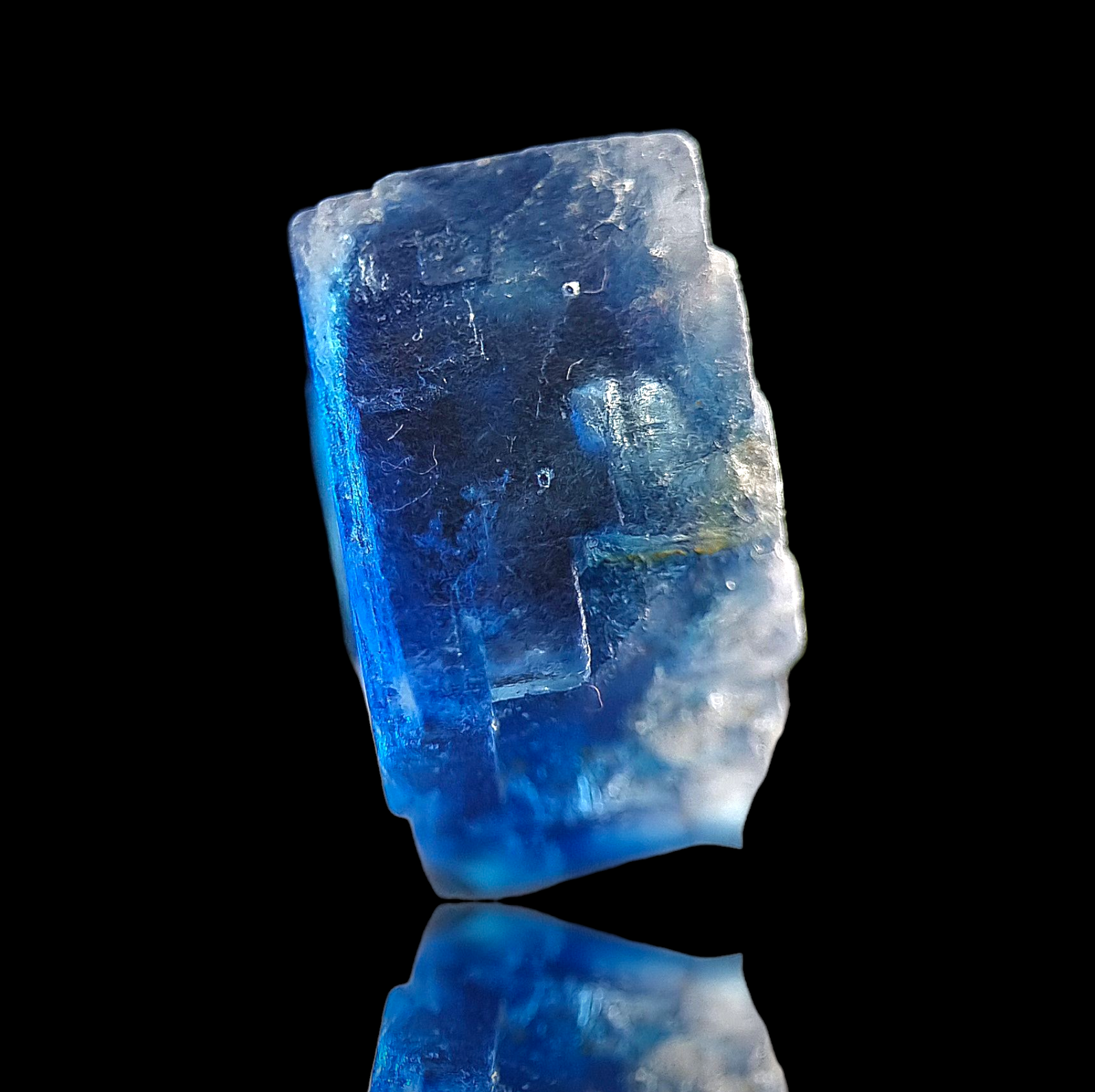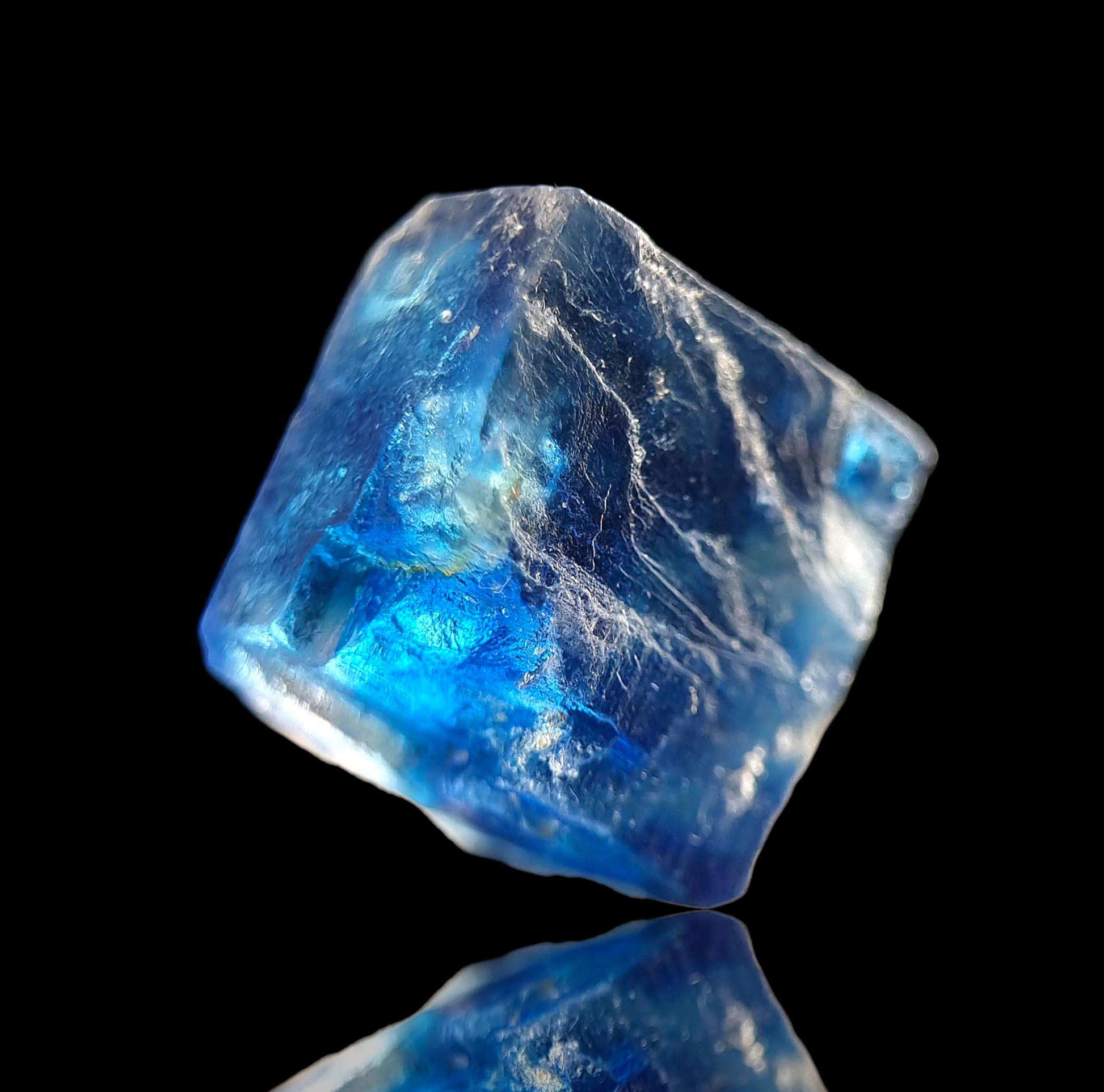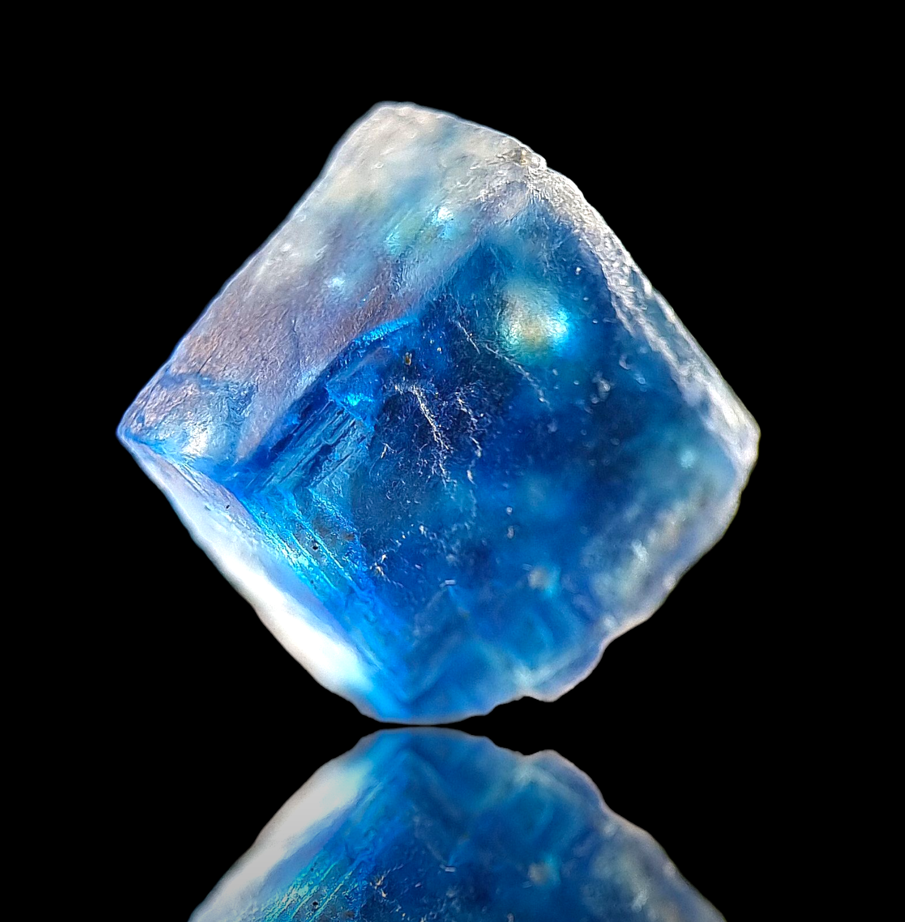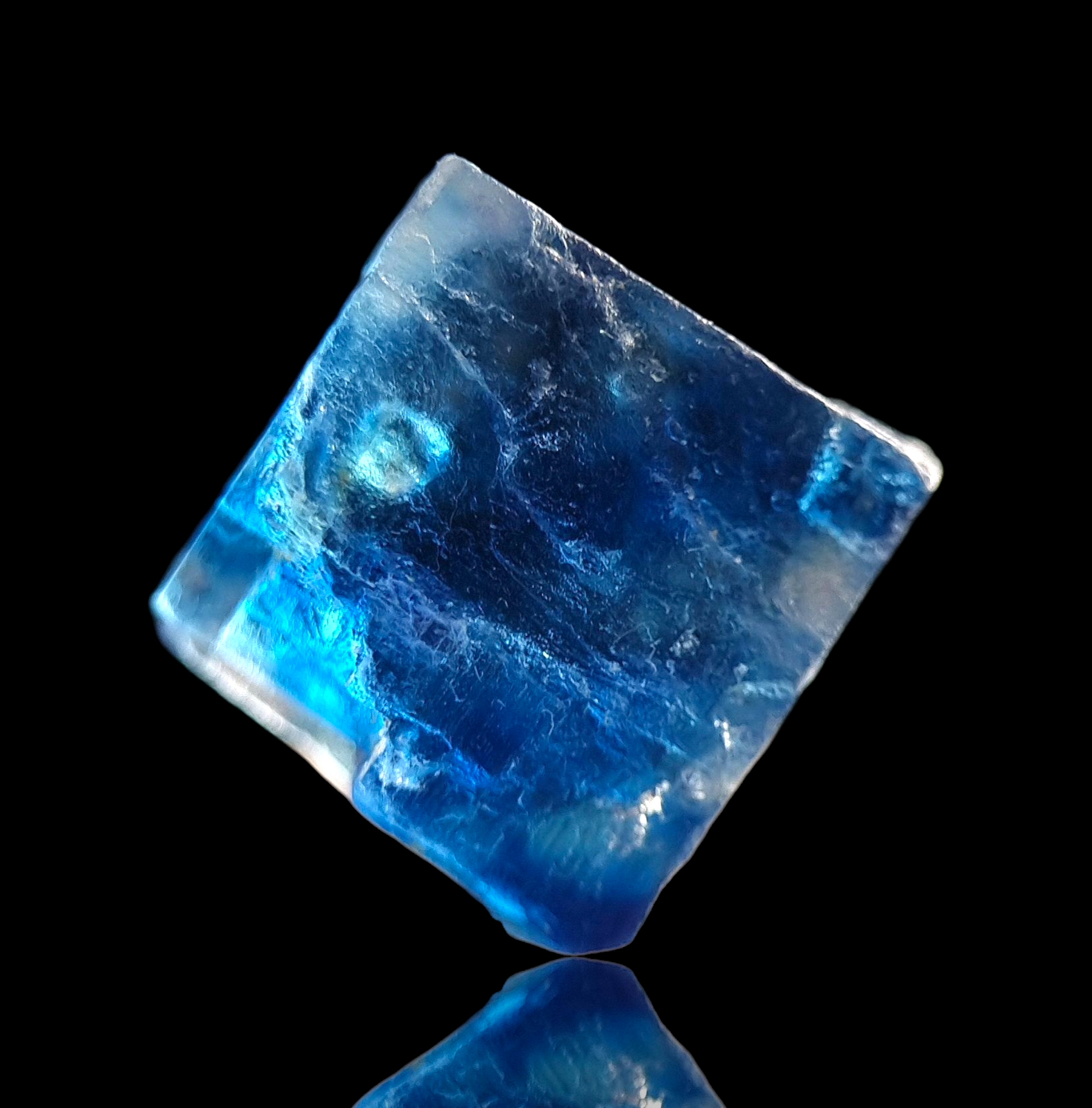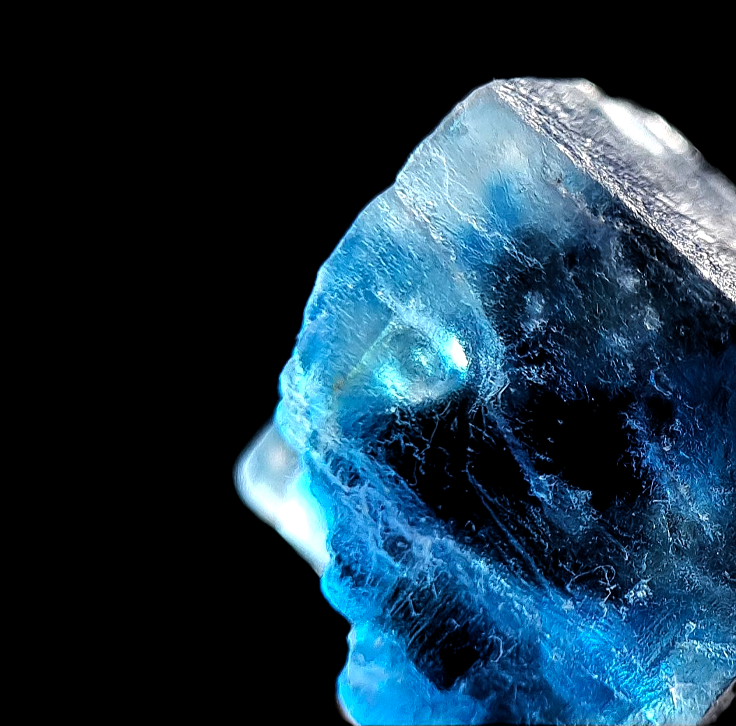🇩🇪Transparenter intensivblauer Halit mit einer seltenen Besonderheit, und zwar einem Einschluss einer Luftblase. Vom größten noch aktiven Kaliwerk Deutschlands. Das Stück habe ich von einem Bergarbeiter dort im Ruhestand erhalten.