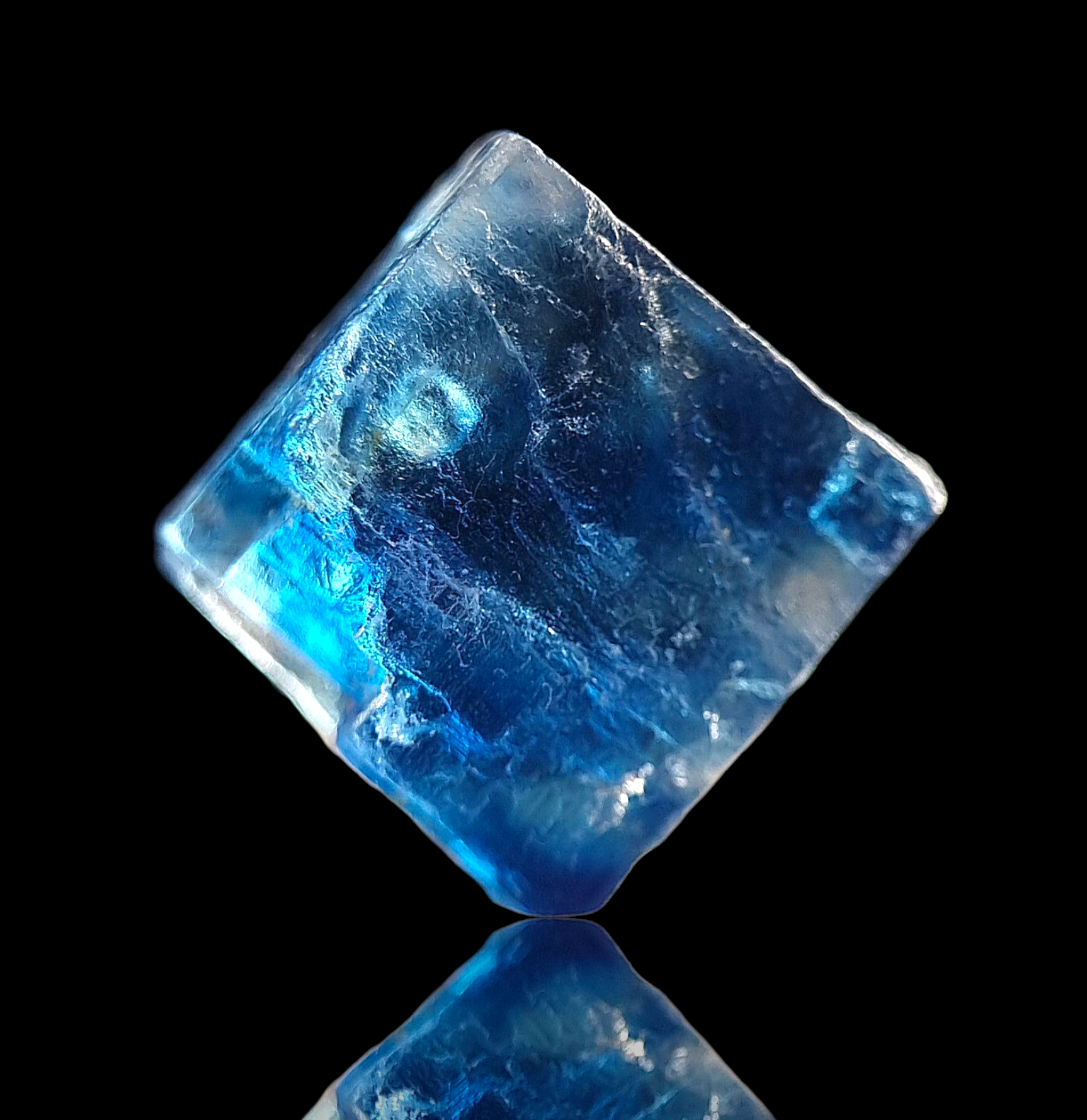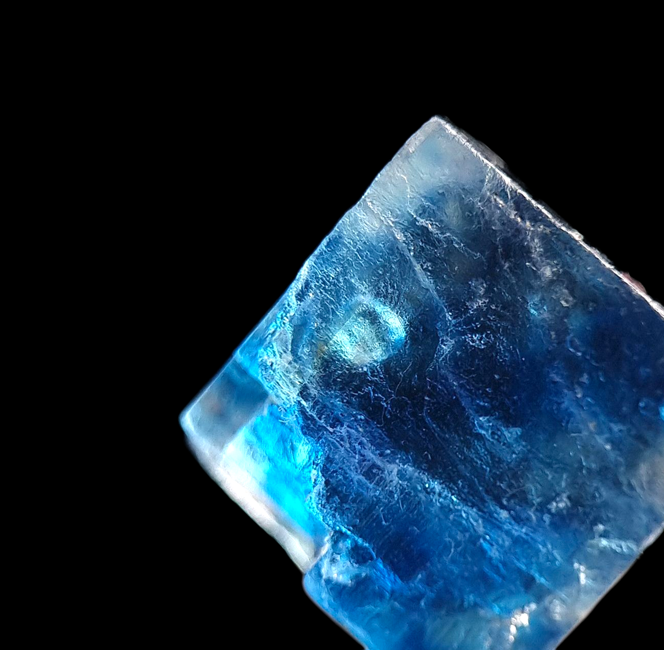 🇬🇧Transparent intense blue halite with a rare specialty: an inclusion of a air bubble . From the largest potash mine in Germany which is still active. Received from a retired miner at the mine.