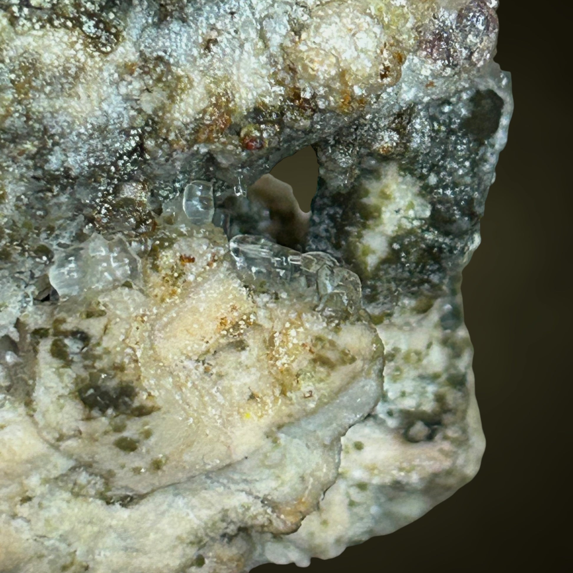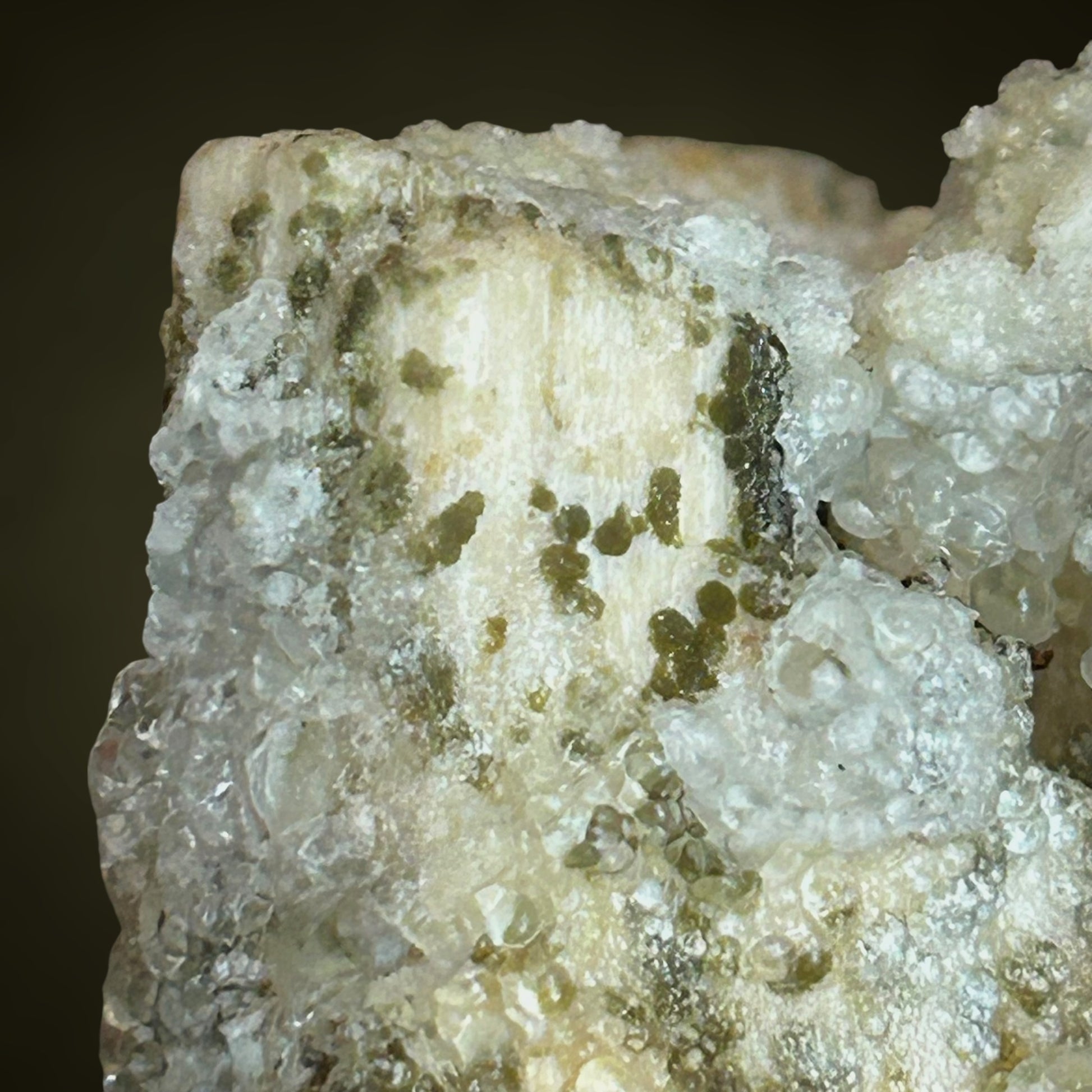 🇬🇧 Gemmy hyalite in drop and bubble form with sphaerosiderite xx on orthoclase.