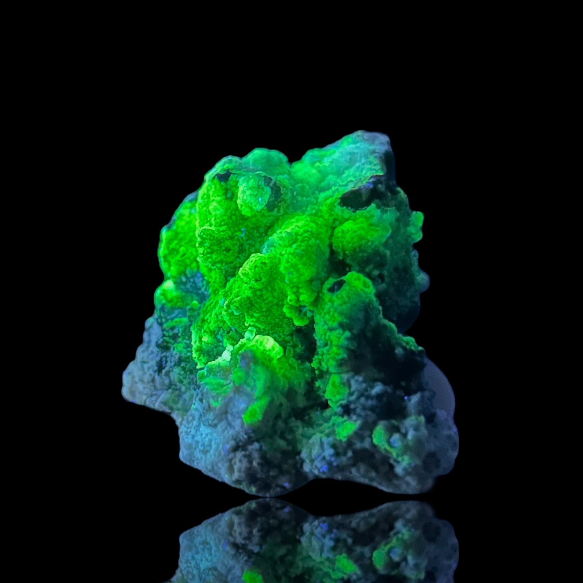 The excellent UV reaction is visible even with an inexpensive flashlight from a hardware store.