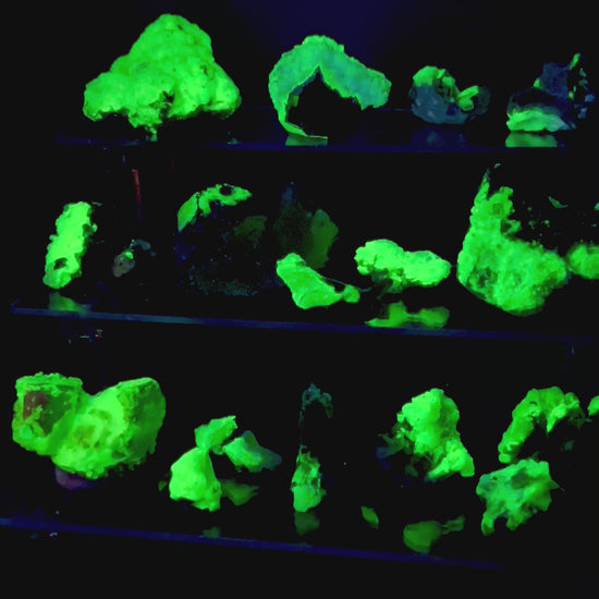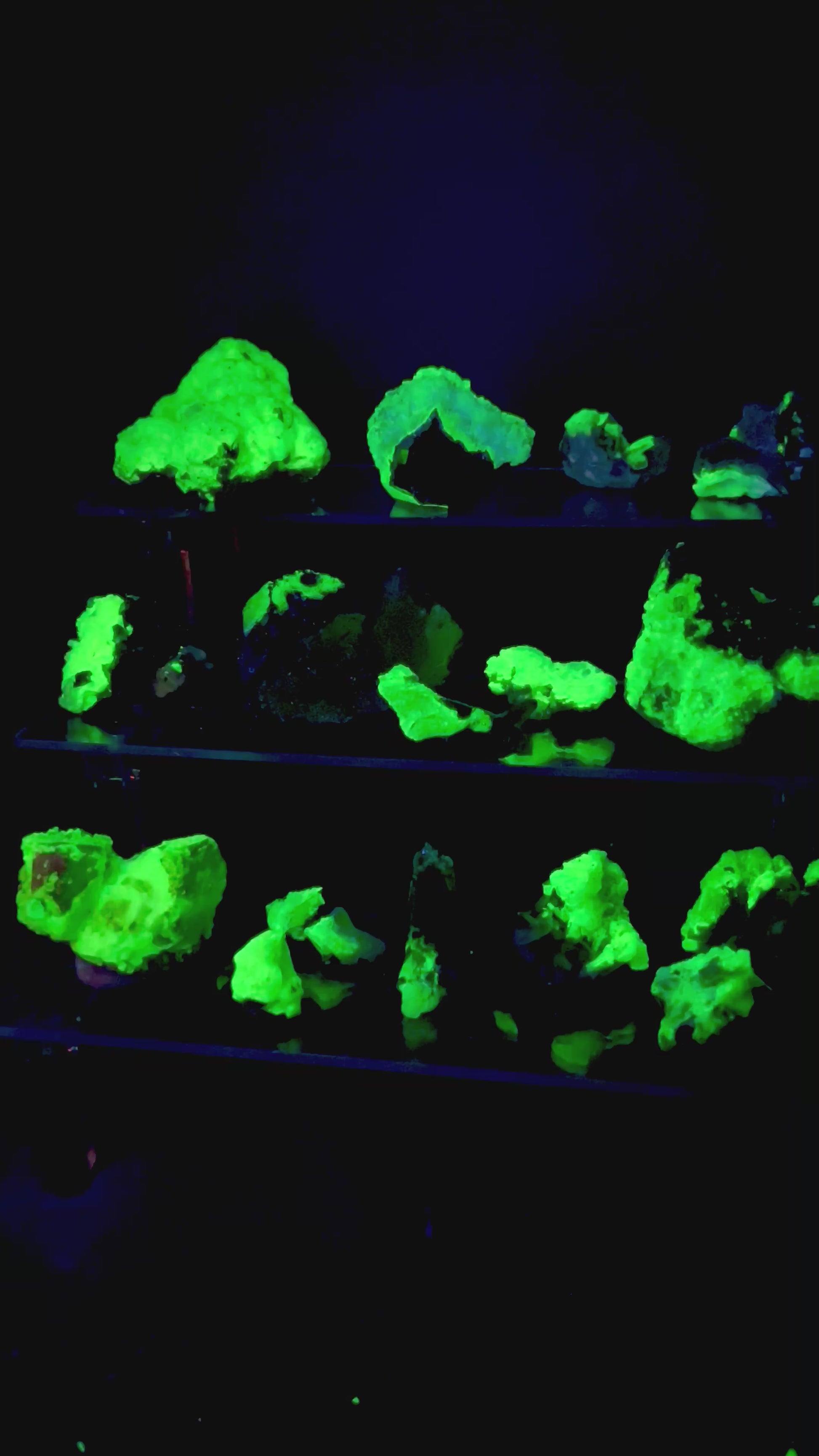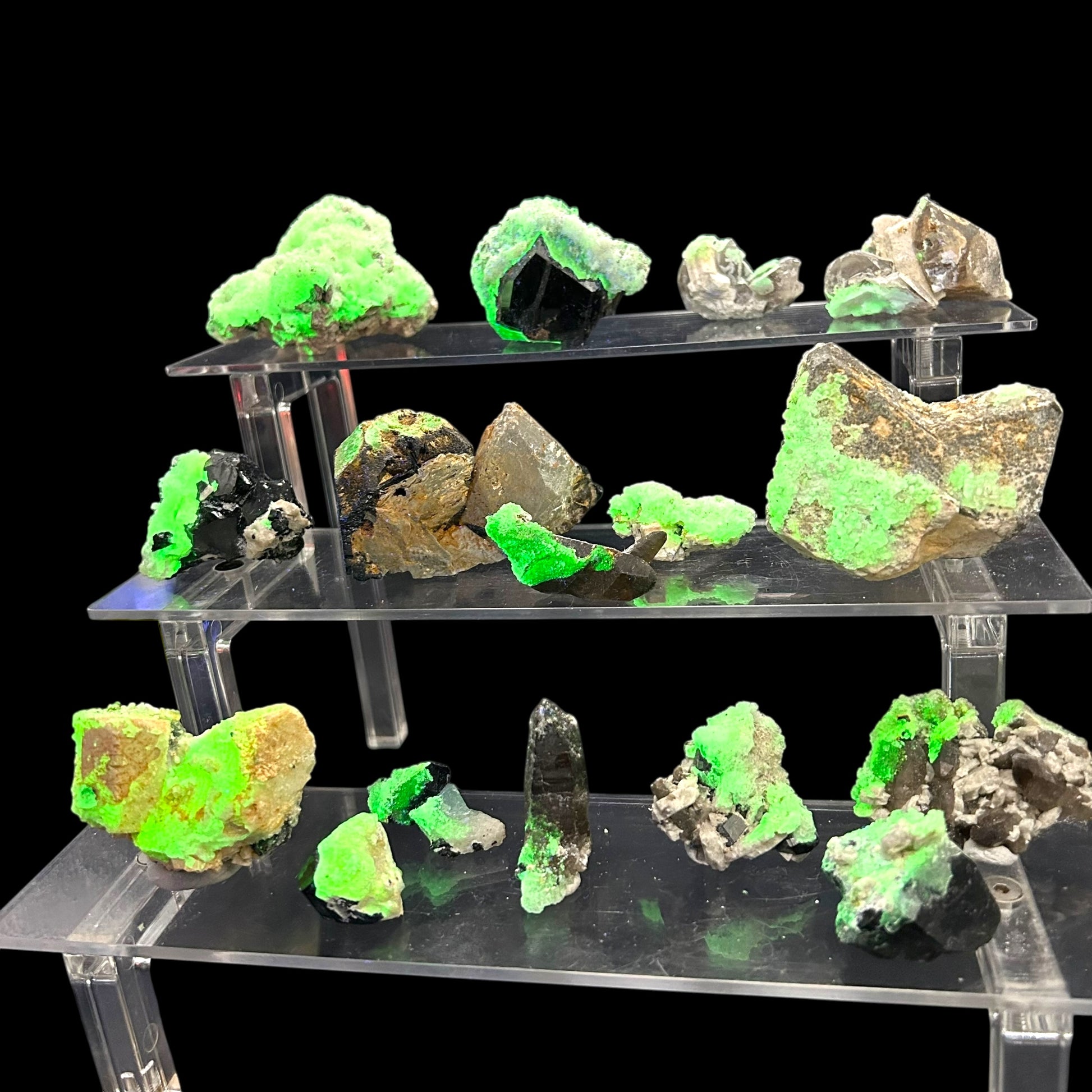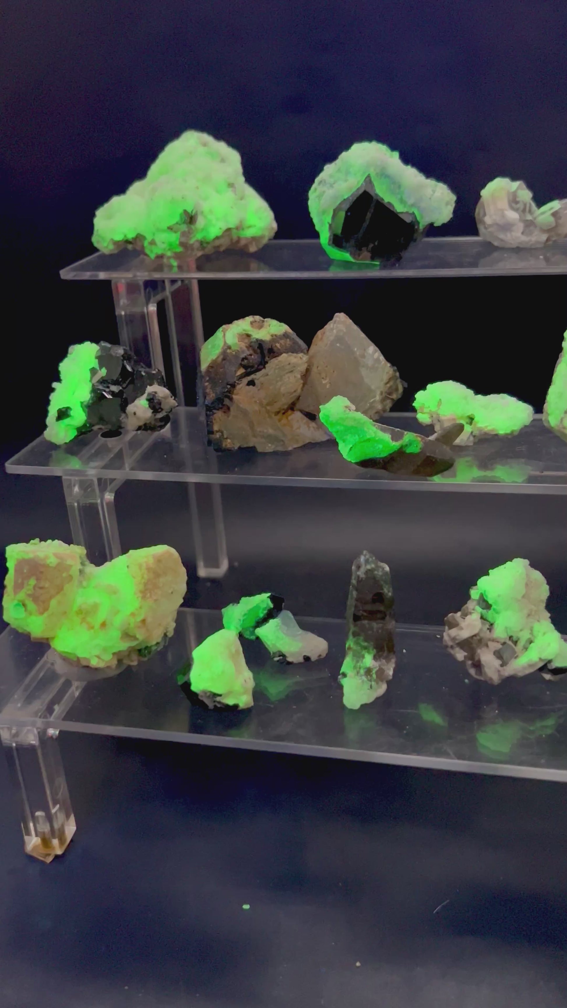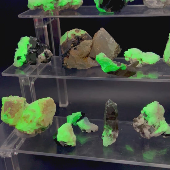 16x Hyalite Opal, very UV reactive on both wavelengths, on Orthoclase, Schorl Tourmaline or Smoky Quartz.