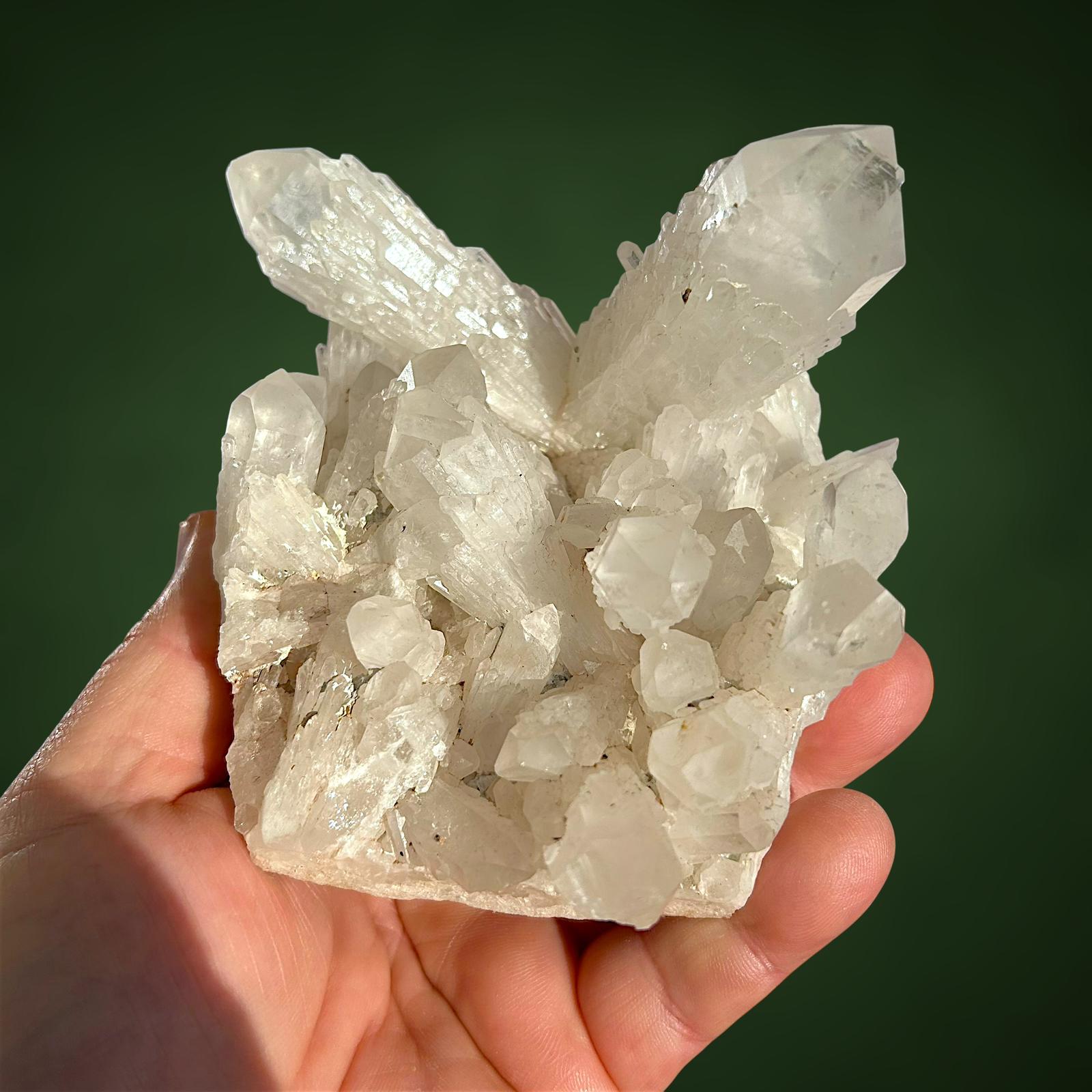 The crystals on this piece have developed in a striking artichoke-like growth style, reminiscent of so-called “Artichoke Quartz,” with layered, sculptural development. They are beautifully clear, highly lustrous, and sharply defined, creating a dynamic interplay of transparency, geometry, and brilliance. The overall aesthetics are powerful yet refined — a visually balanced and highly decorative cabinet specimen.