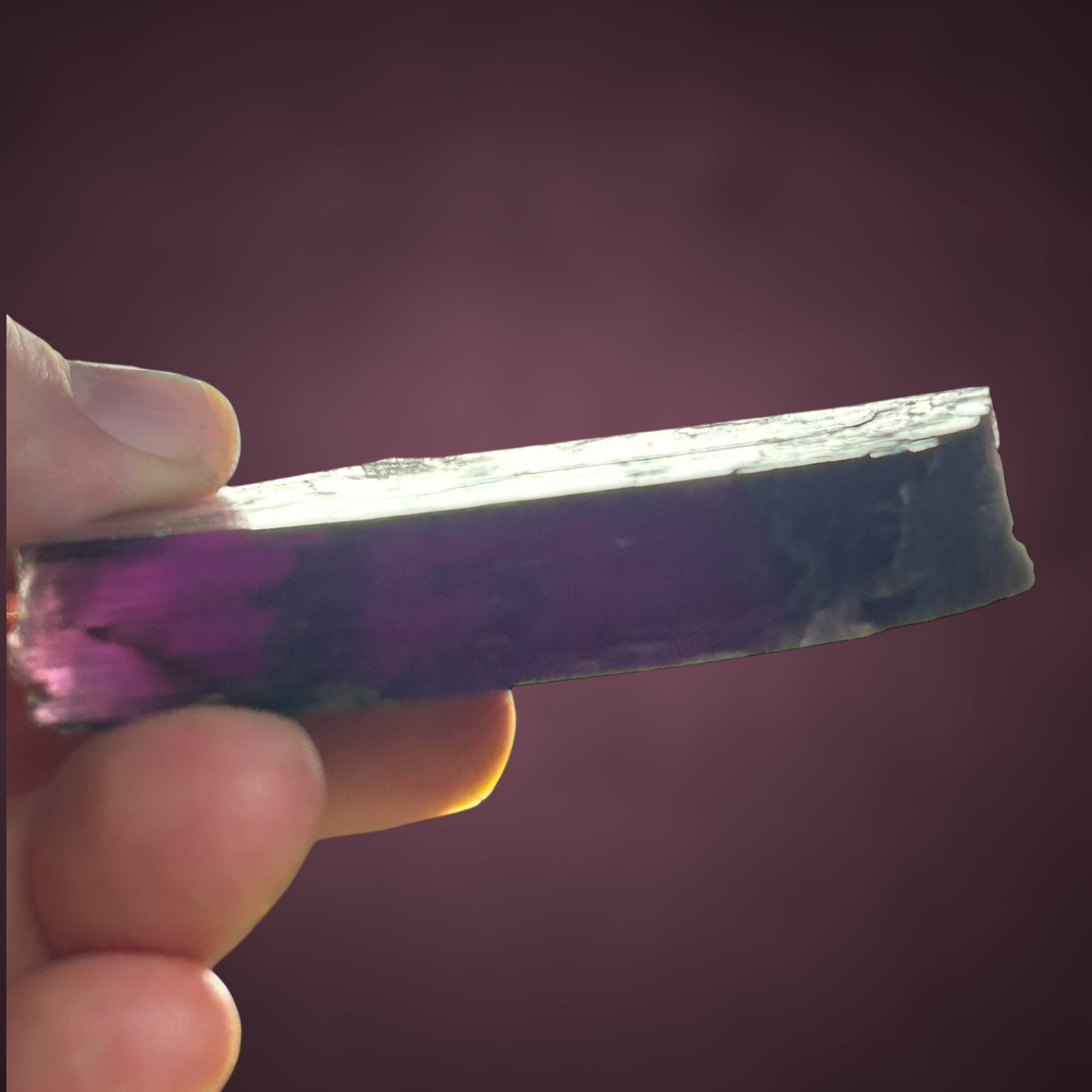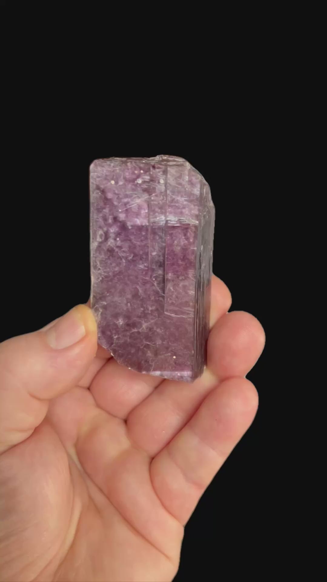 A superb, finger-thick Lepidolite crystal displaying remarkable transparency despite its impressive size. The vibrant lavender tone and the overall clarity make this piece a true standout among specimens from Namibia.