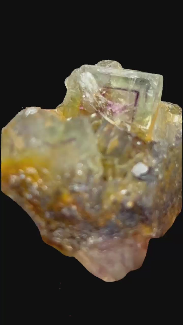 Cute greenish-yellow gemmy fluorite with beautiful distinct and clear purple phantoms.