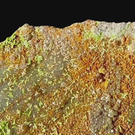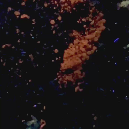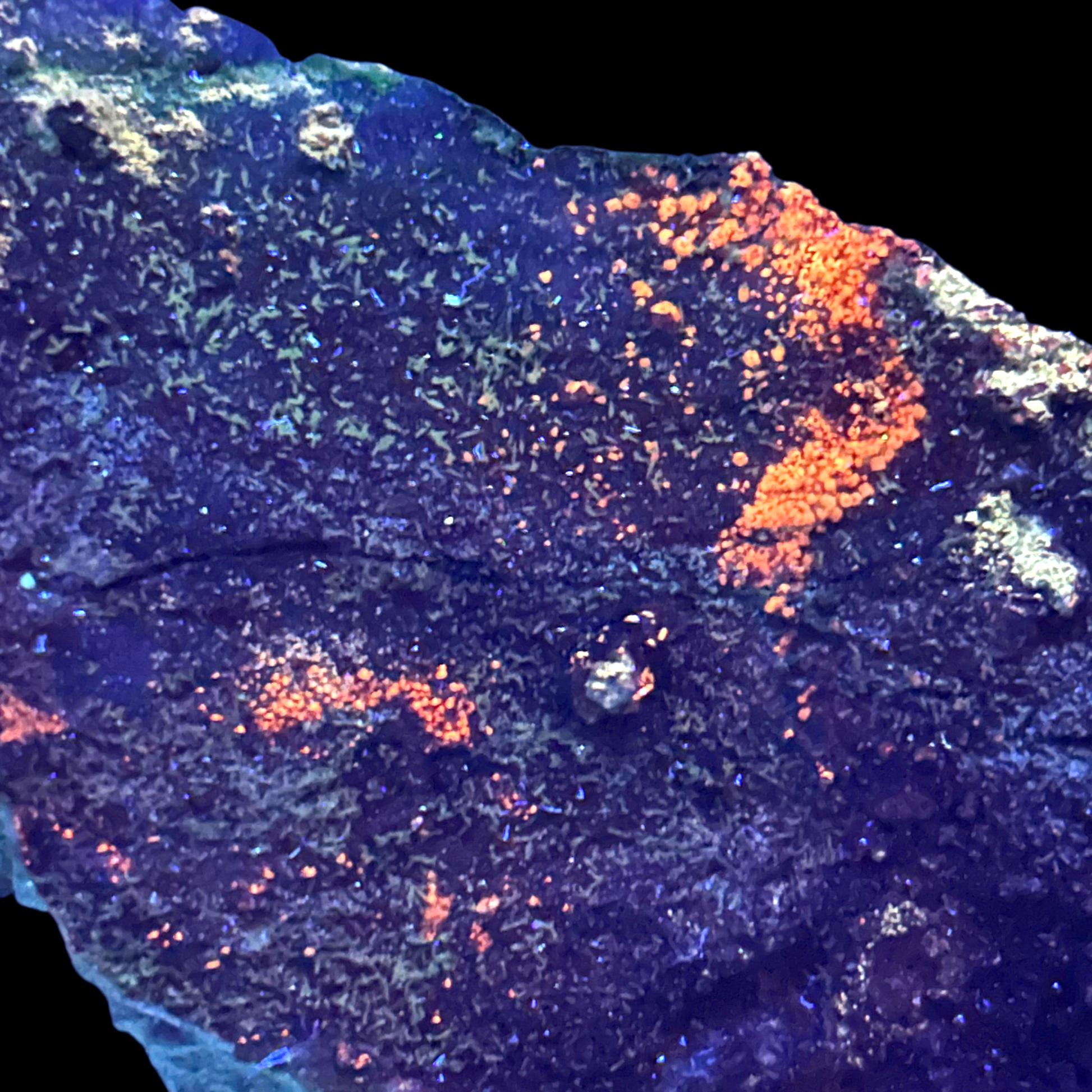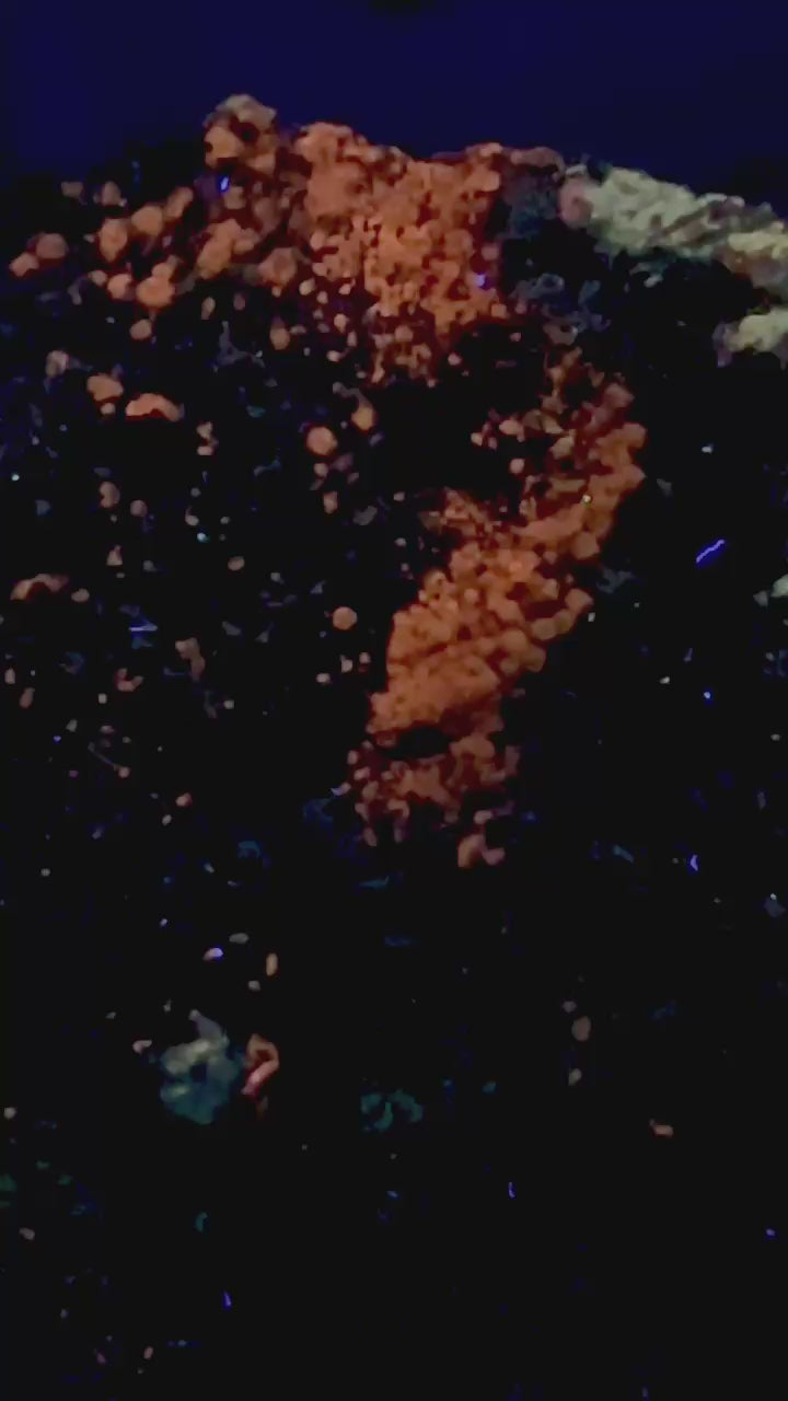 The second generation displays barrel shaped, beige crystals that fluoresce orange under UV light.