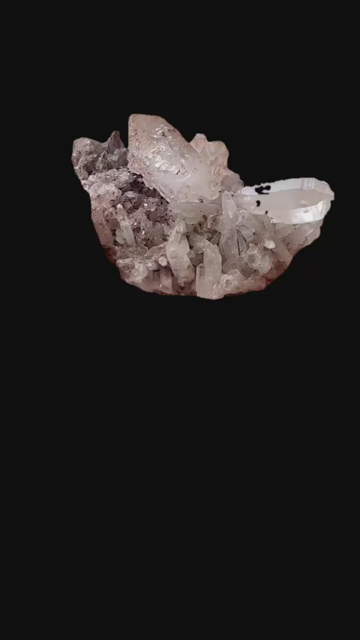 Highly lustrous quartz crystal cluster with two outstanding dominant xls with red hematite from the lead mines near Obernberg am Brenner, Austria.