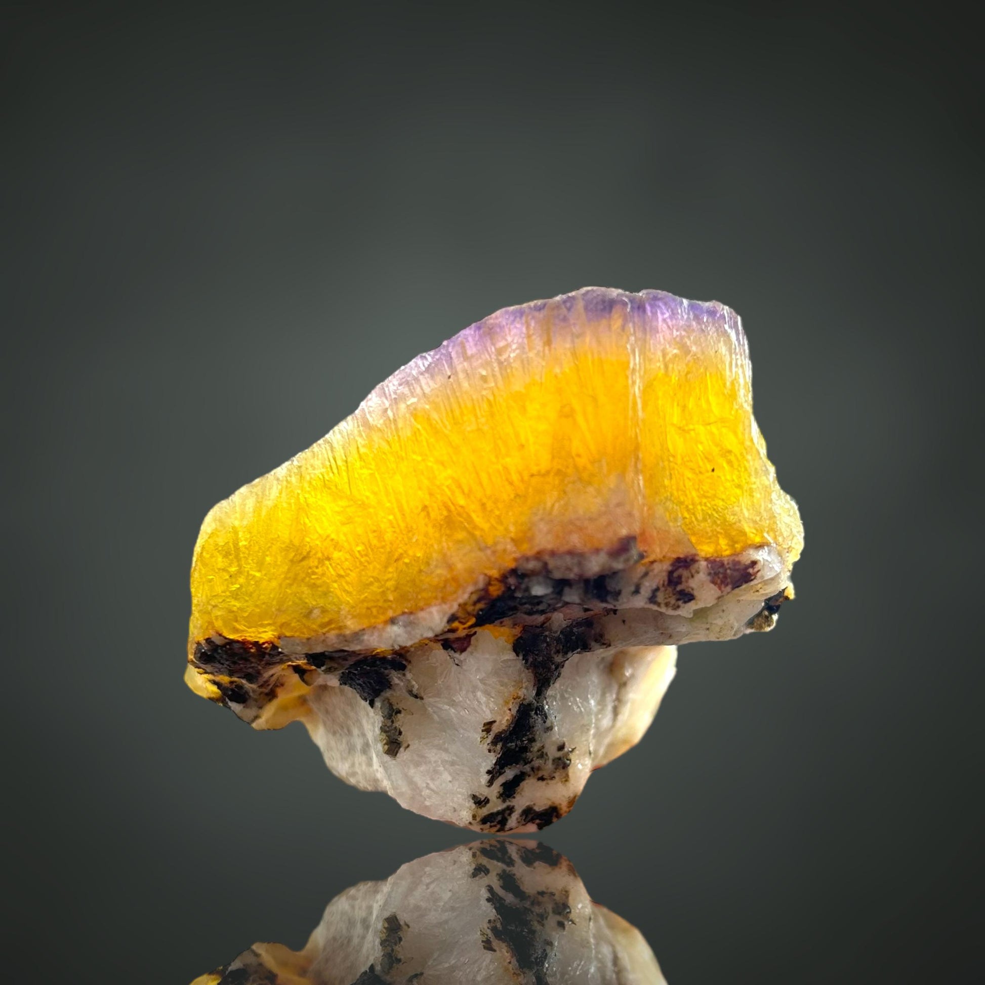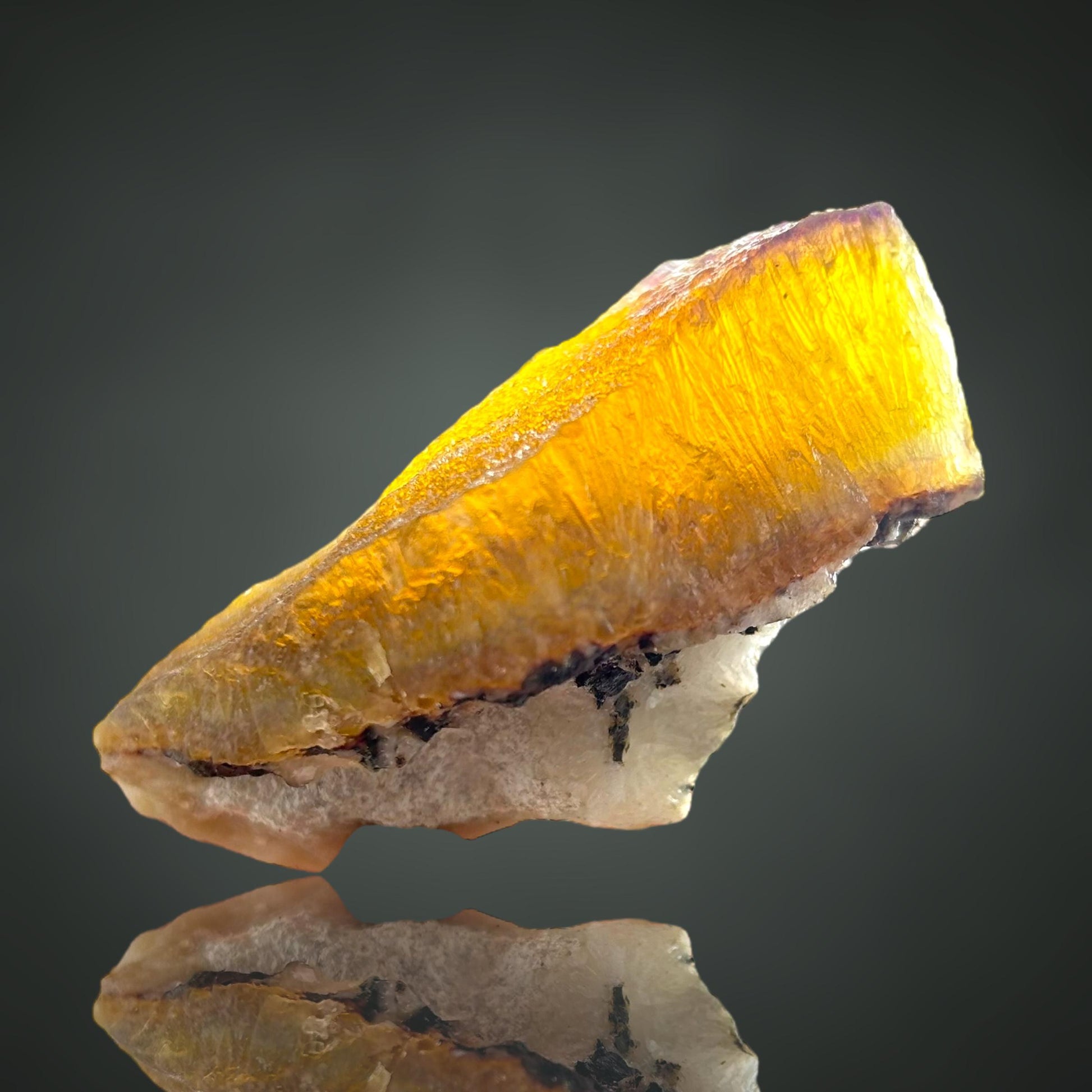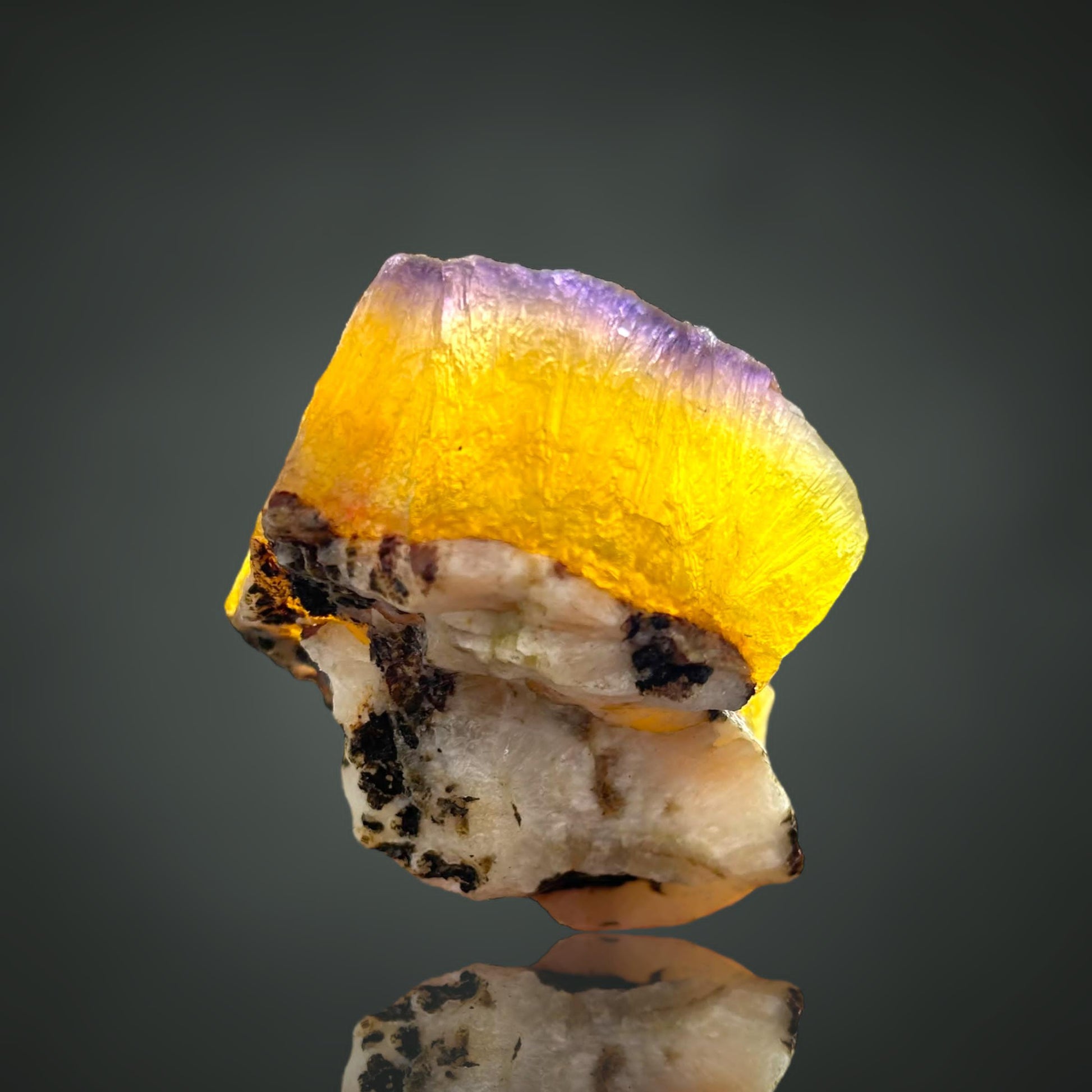 🇬🇧Beautiful and gemmy, striking honey-colored fluorite with very distinct, clearly defined color zones on quartz. New find in Namibia.