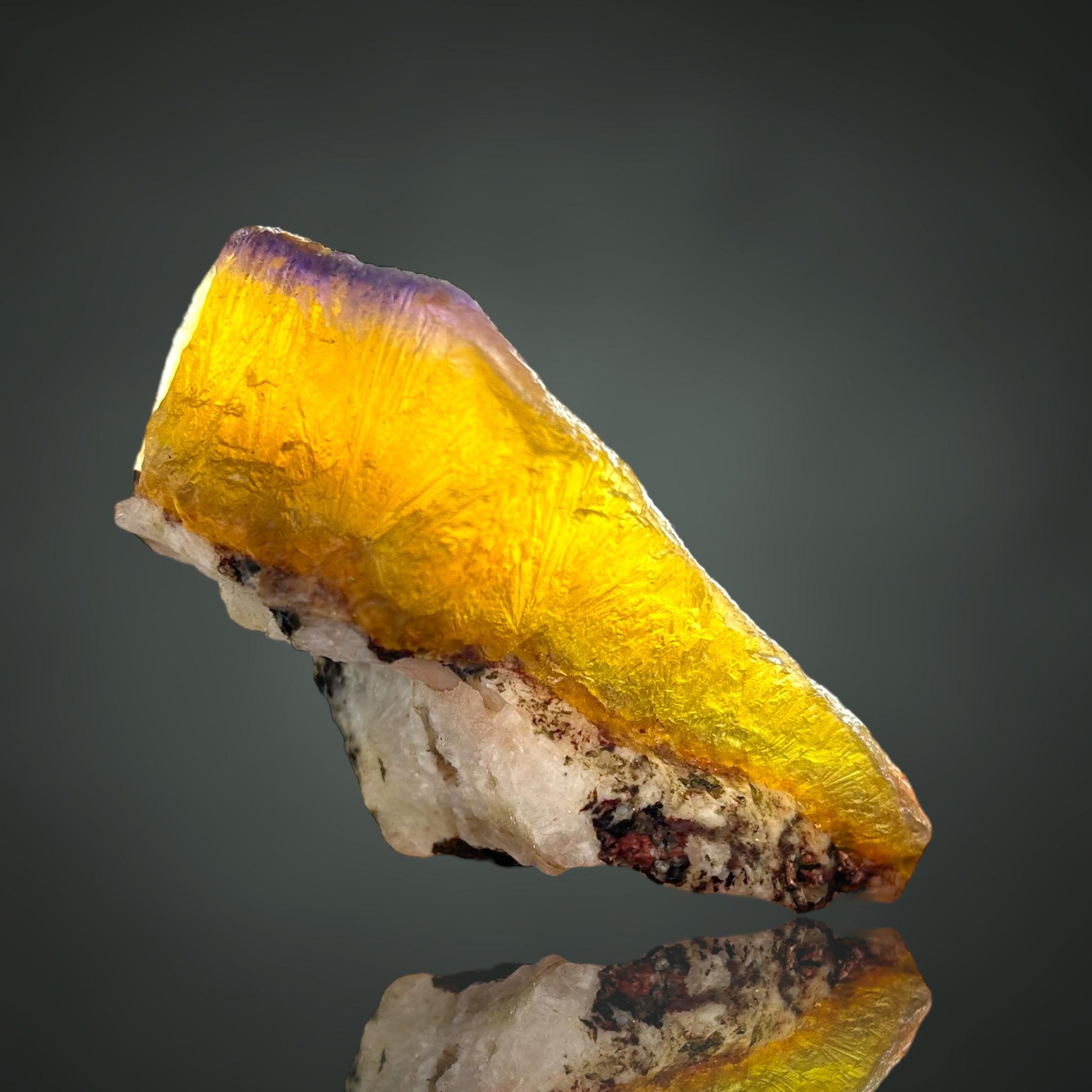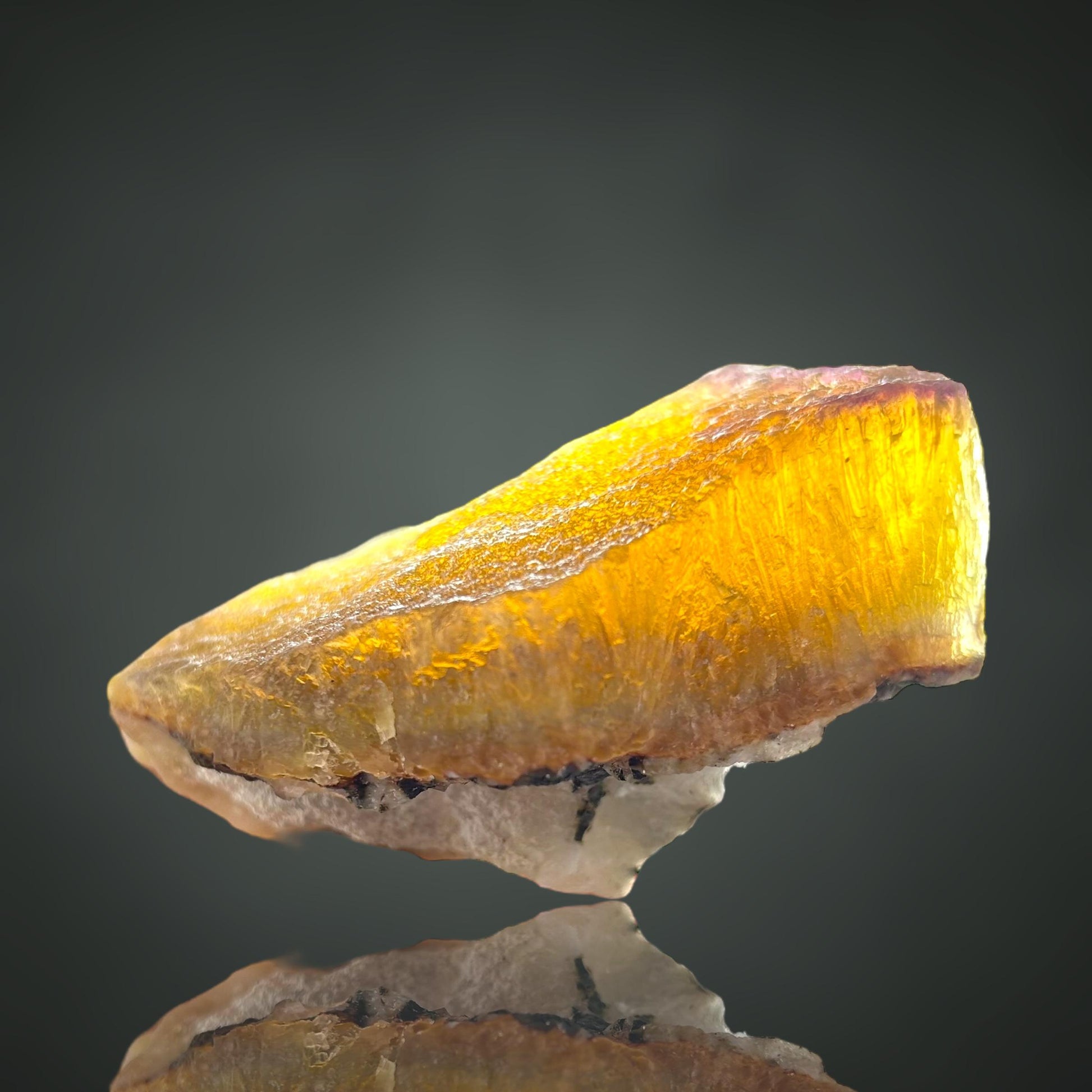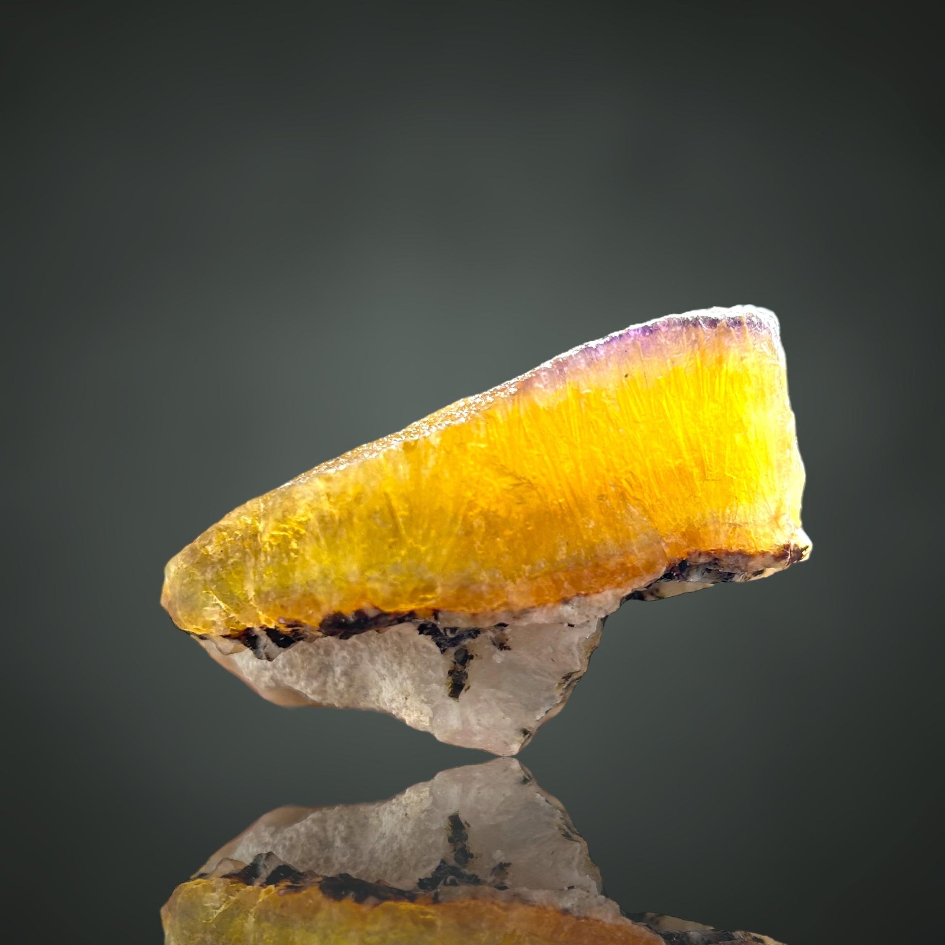 🇩🇪Wunderschöner und prägnanter, gemmy honigfarbener Fluorit mit deutlich abgegrenzten Farbzonen auf Quarz. Neufund aus Namibia.