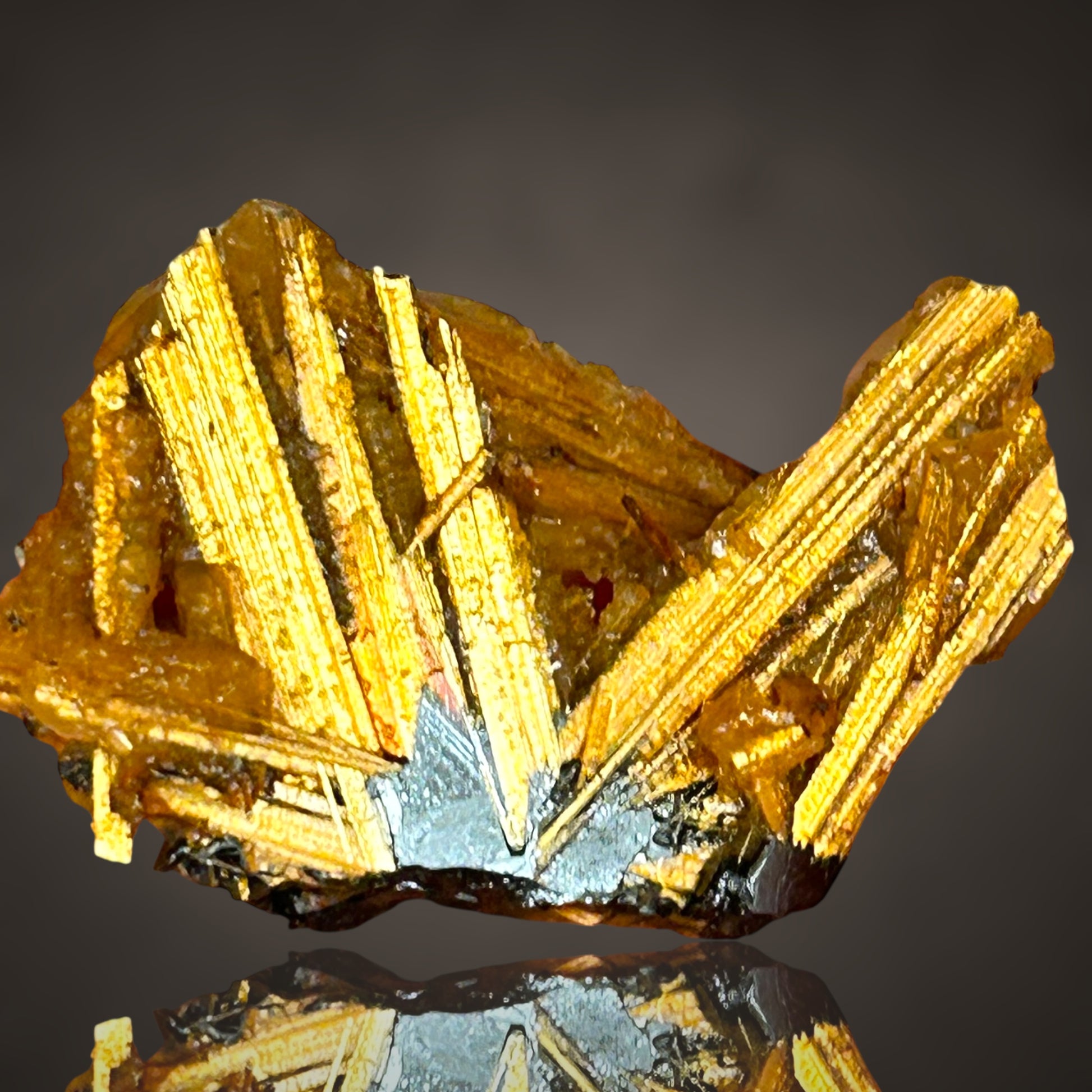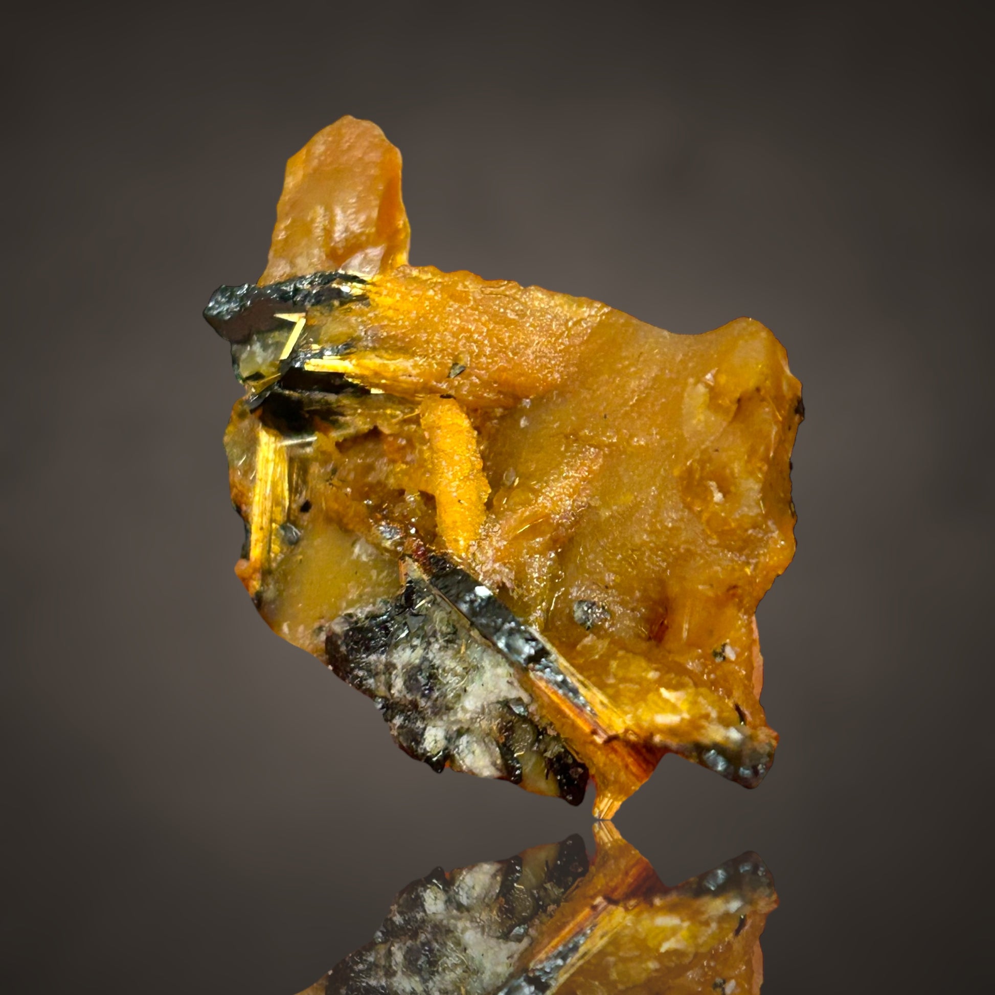 A very rare paragenesis is displayed here: rutile and opal. A beautiful hematite–rutile star, partly covered on one side by opal (without color play).
