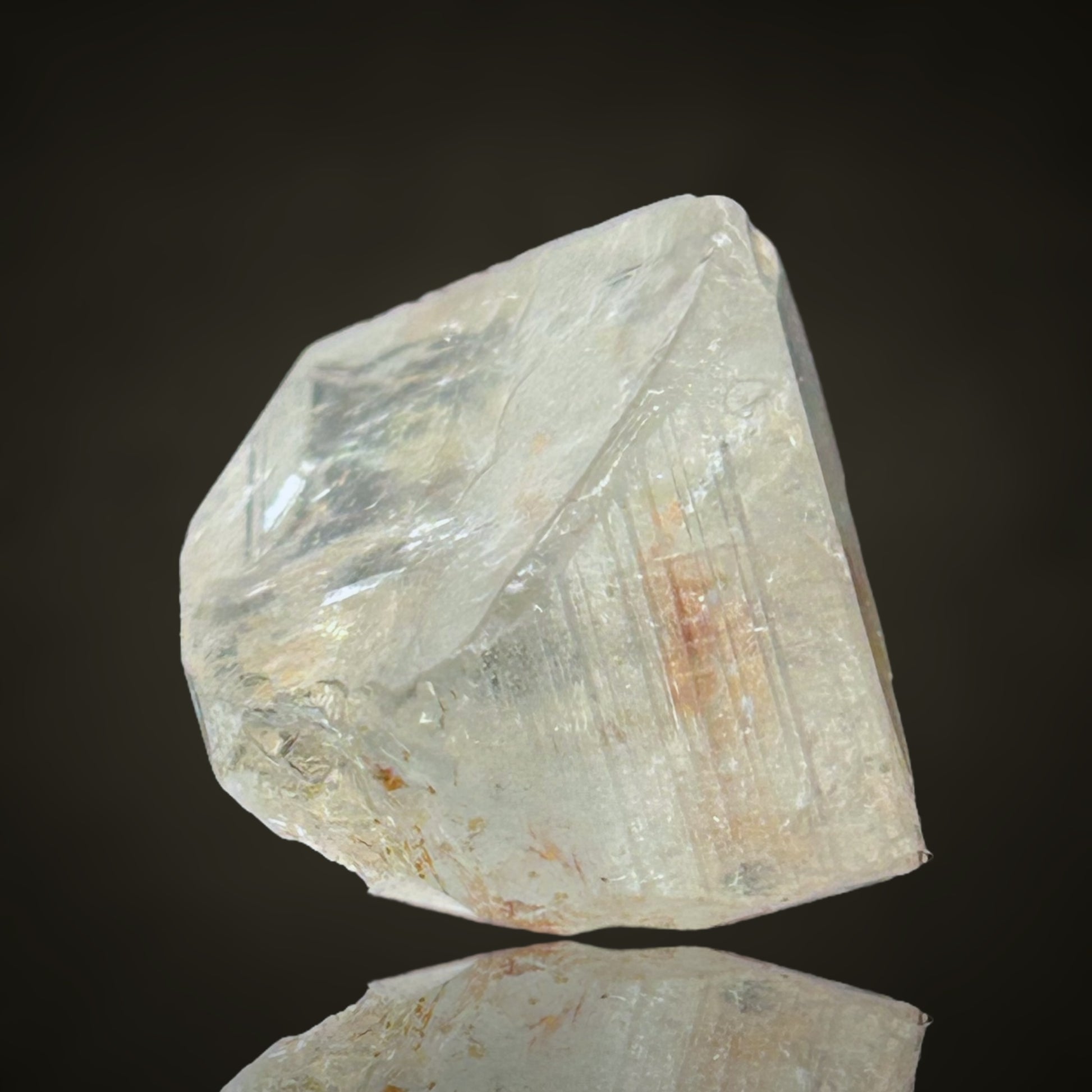 Virgem da Lapa in Minas Gerais is famous for its transparent colorless to pale-blue topaz crystals. They often form in albite-rich pegmatites and show sharp terminations and excellent luster.