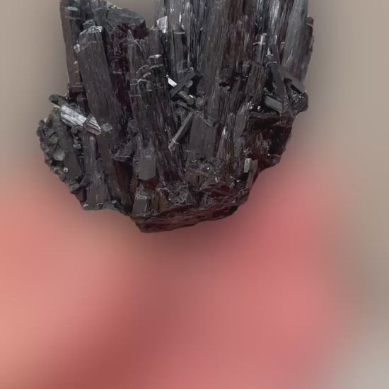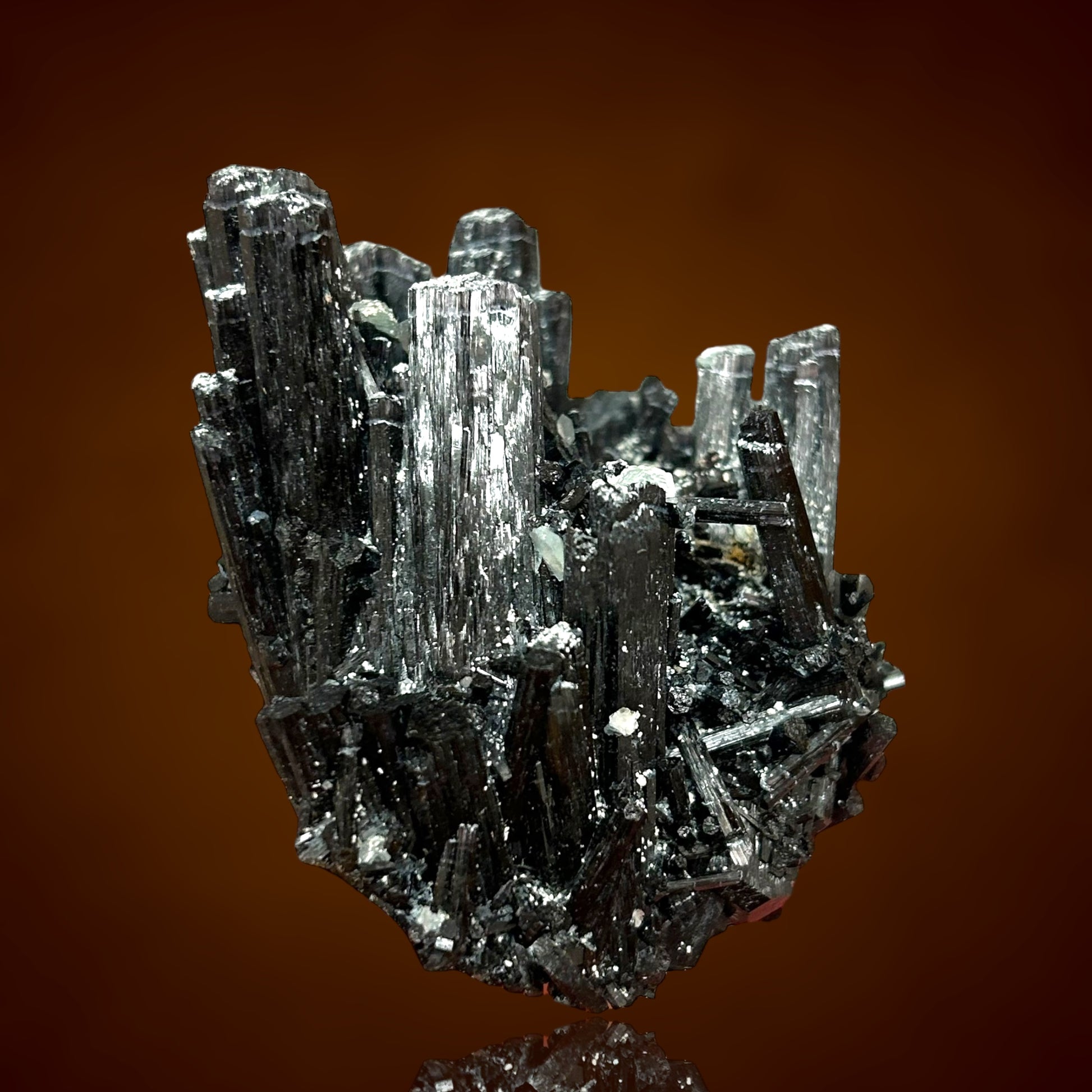 Highly lustrous tourmalines with a reddish-brown sheen form a stunning, bouquet-like cluster. Every aspect of these crystals evokes the appearance of fine Tanzanian dravites — we are currently analyzing them.